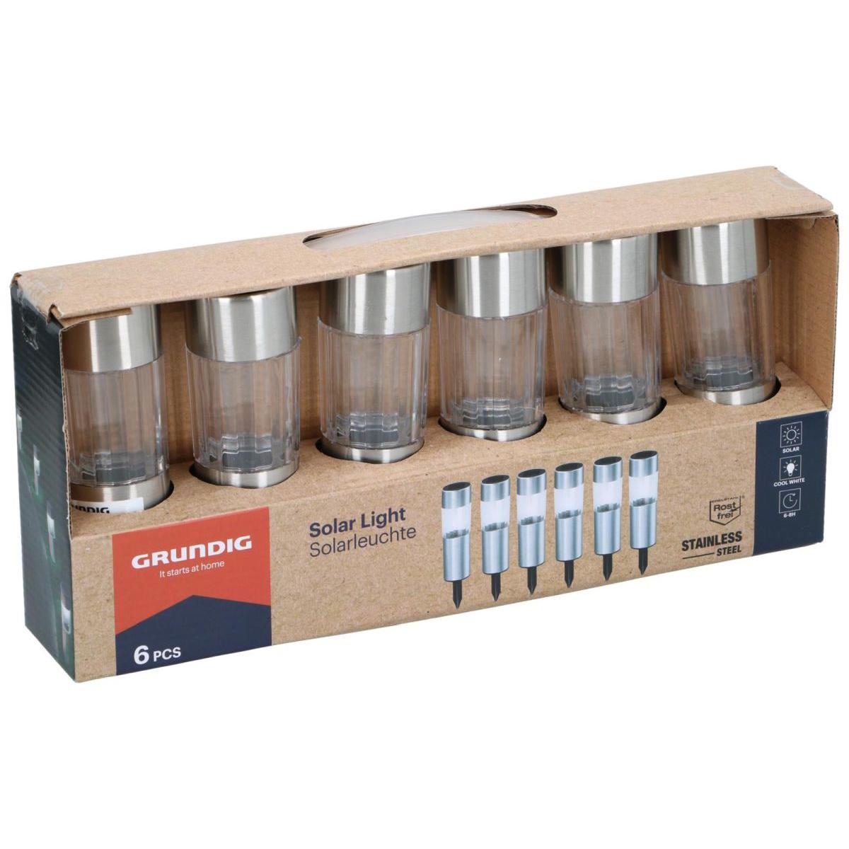 SOLAR LAMP 4,5X15CM INOX 6PCS GRUNDIGSOLAR LAMP 4,5X15CM INOX 6PCS GRUNDIG