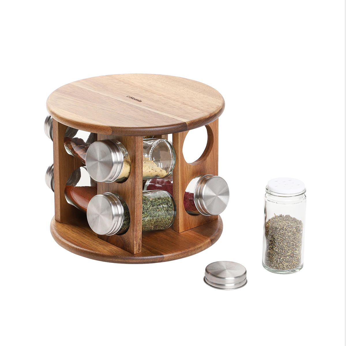 Spice set | MOOKA | on acacia stand 8 jars | 15x19 cm | 898377Spice set | MOOKA | on acacia stand 8 jars | 15×19 cm | 898377