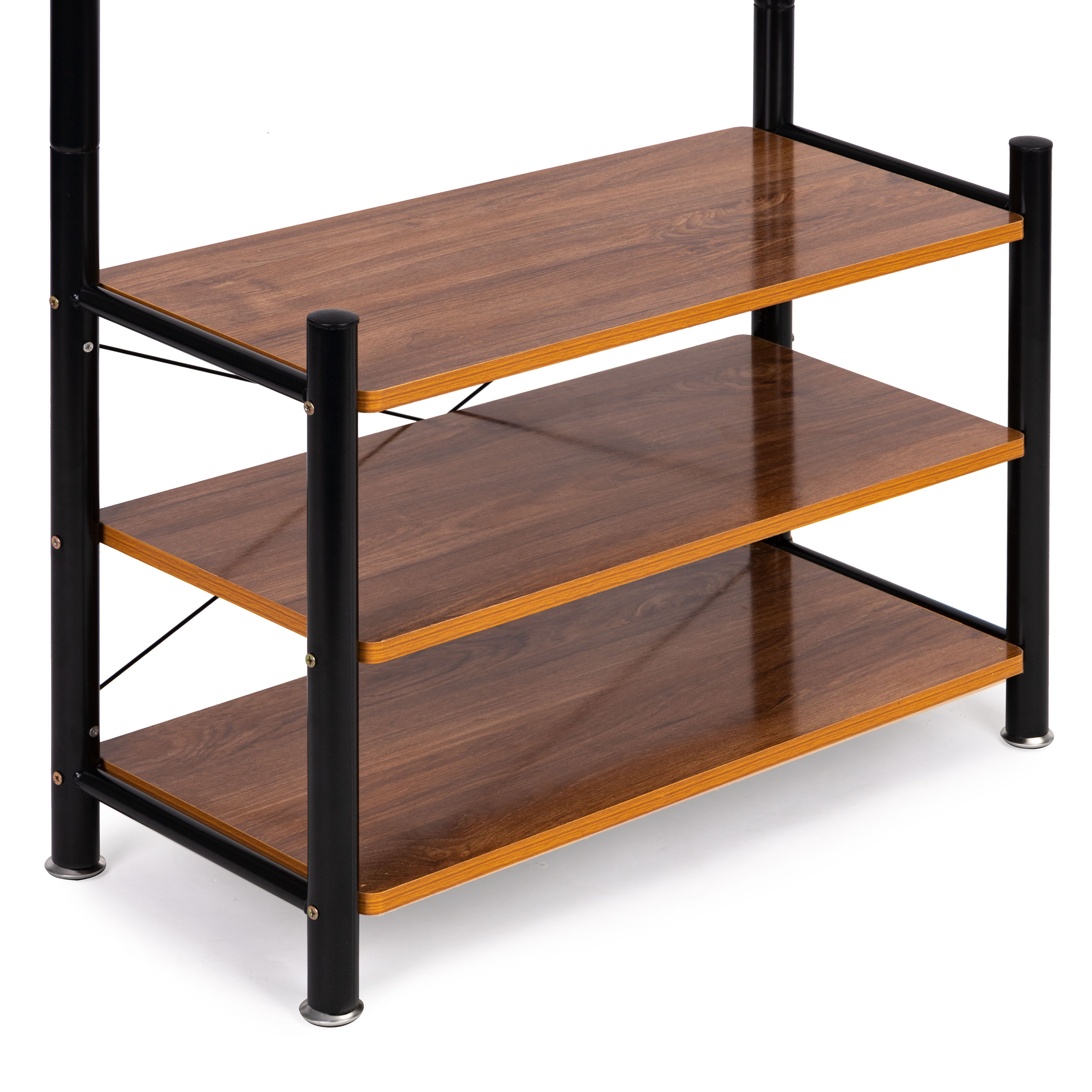 In the lower part of the stand there are three functional shelves, on which you can put smaller items of clothing, handbags or even shoes.