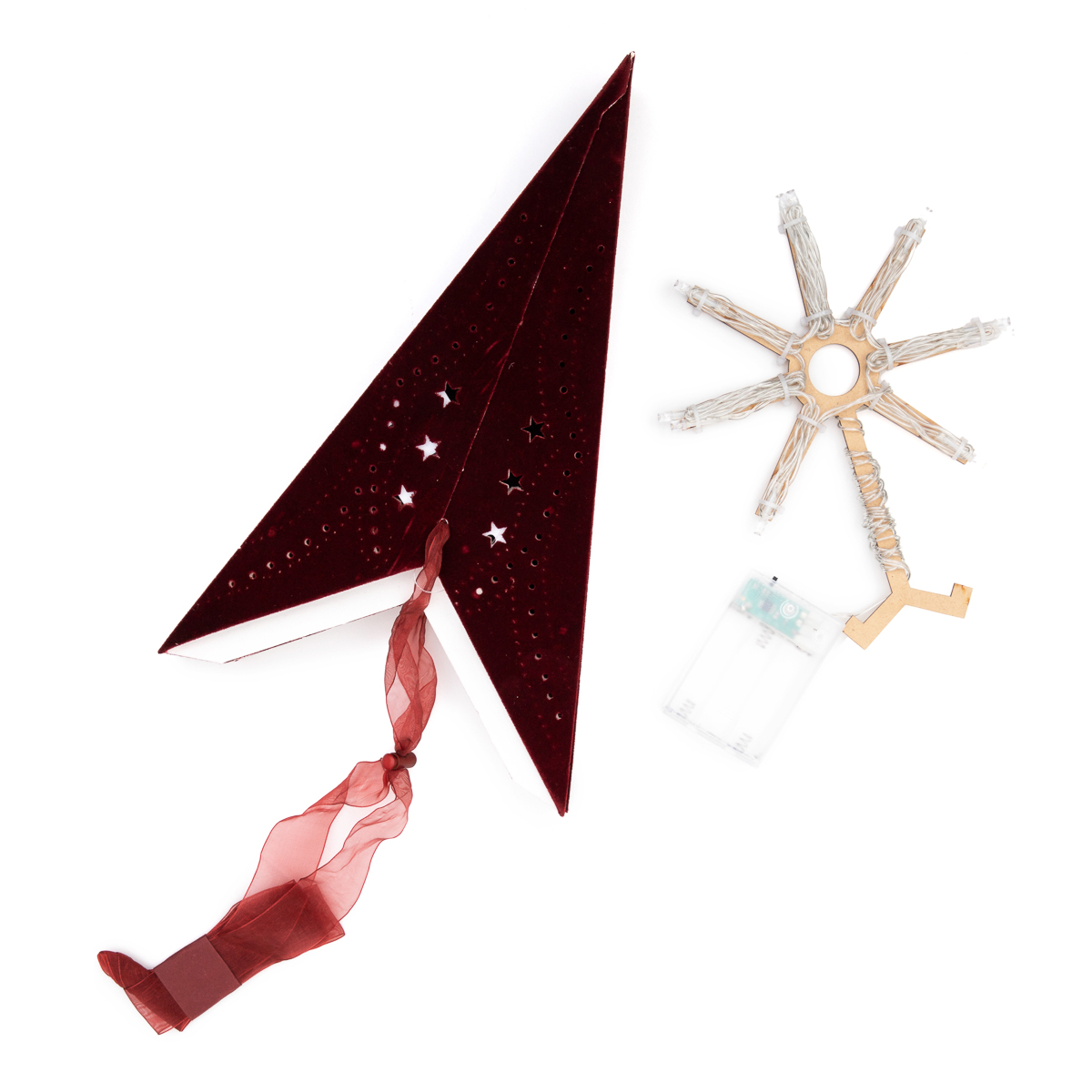 The star is made of sturdy paper in which holes have been carefully cut to create a striking openwork decoration. The LED lights that you place inside the star are wound onto a lightweight frame. The battery-powered lights make the decoration safe to leave on even when you are not at home, e.g. hanging in the window.