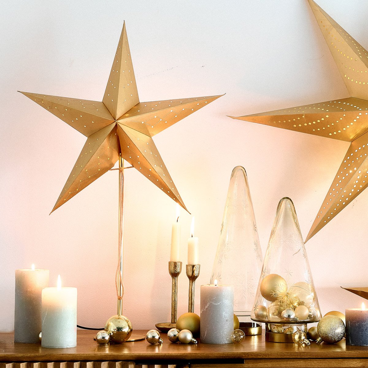 The GALLA lamp radiates a subtle golden glow that perfectly enhances the festive mood. Its classic star form and the delicate perforations through which the light penetrates create striking reflections on walls and surrounding surfaces. It is a decoration that not only catches the eye, but also creates a cosy, warm atmosphere, ideal for winter evenings.