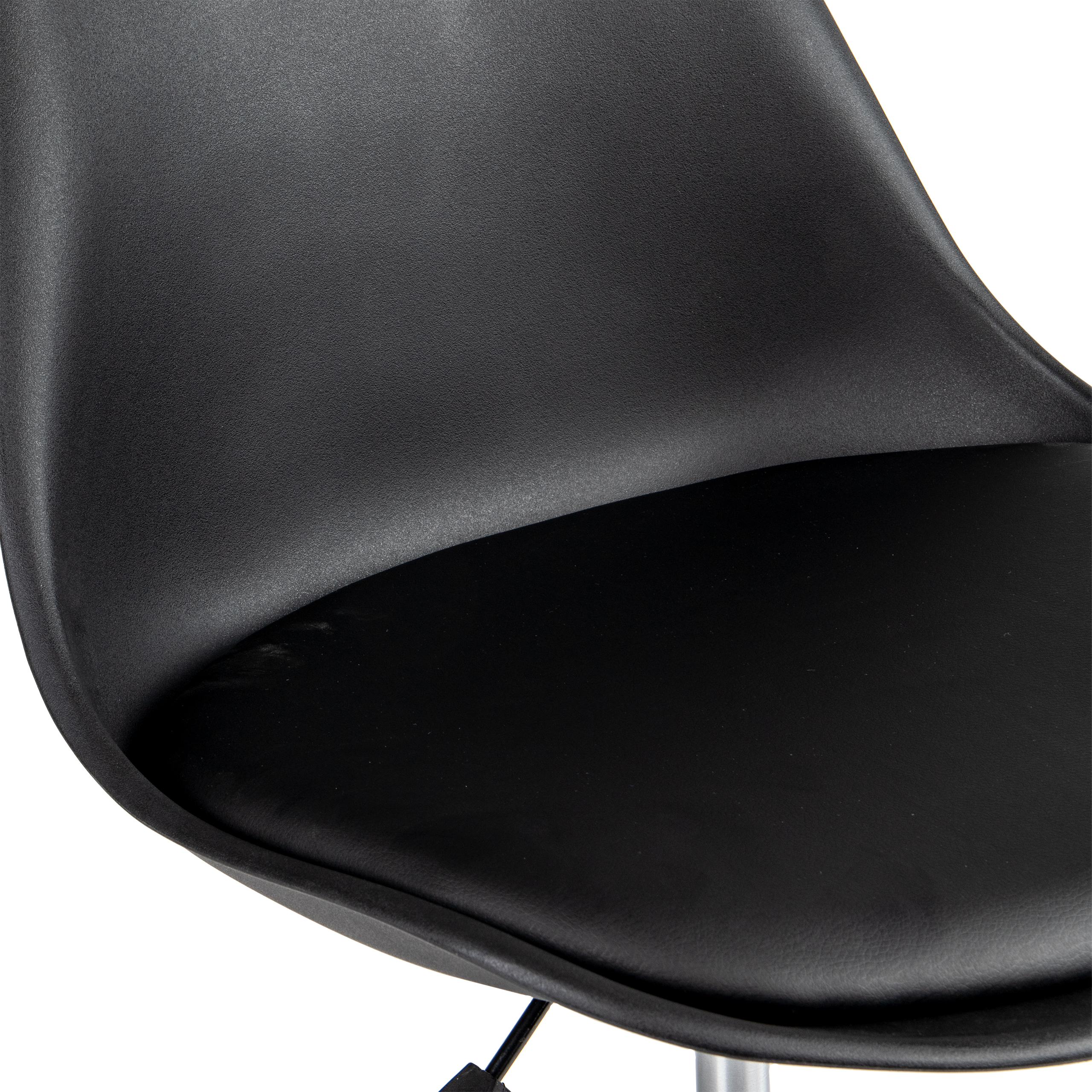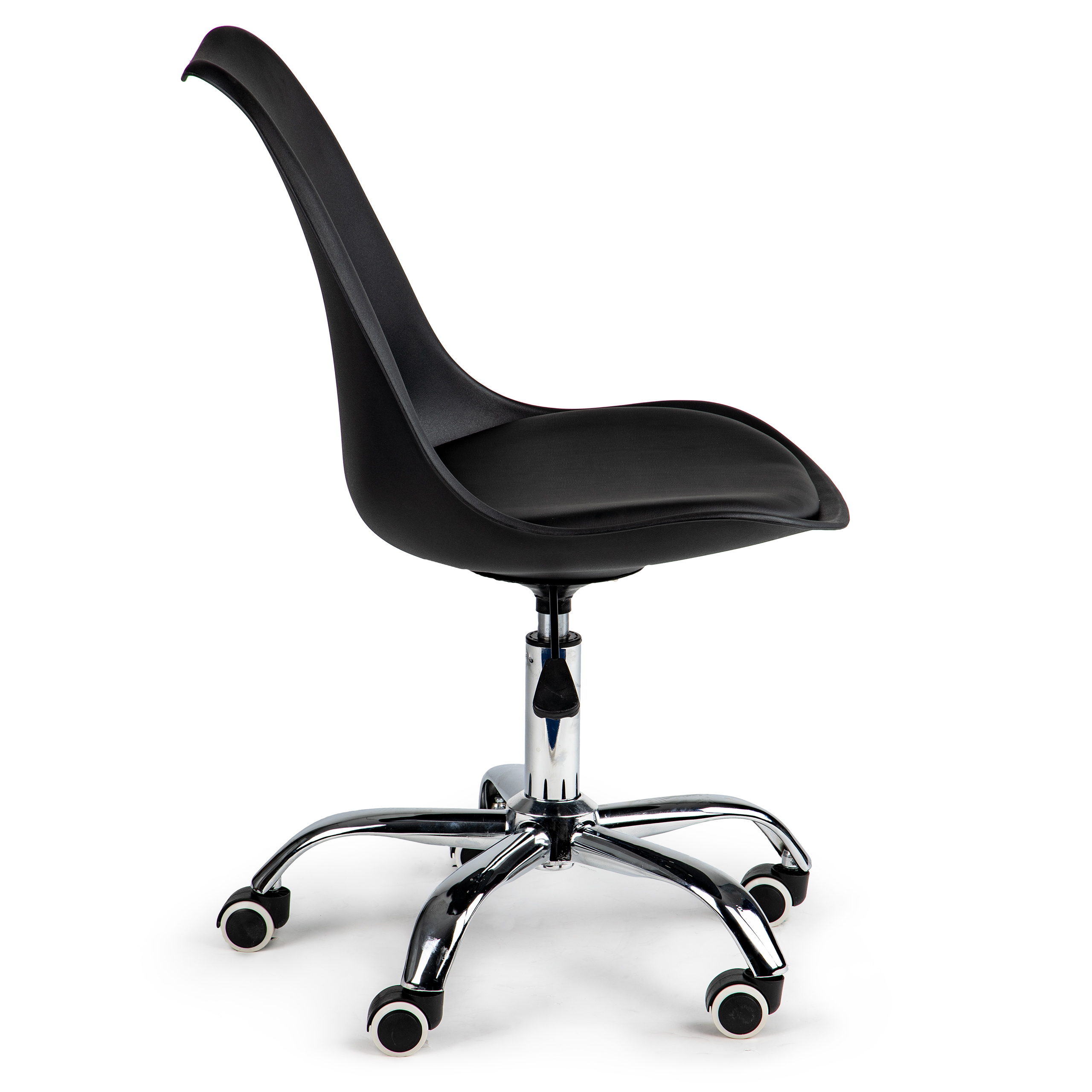 For proper functioning while working at a desk, you need a chair that allows long, comfortable hours in front of the computer. The swivel chair by ModernHome is an ideal solution for offices, home workstations, or reception areas in service spaces. Its black color scheme with chrome accents fits perfectly into modern interiors.