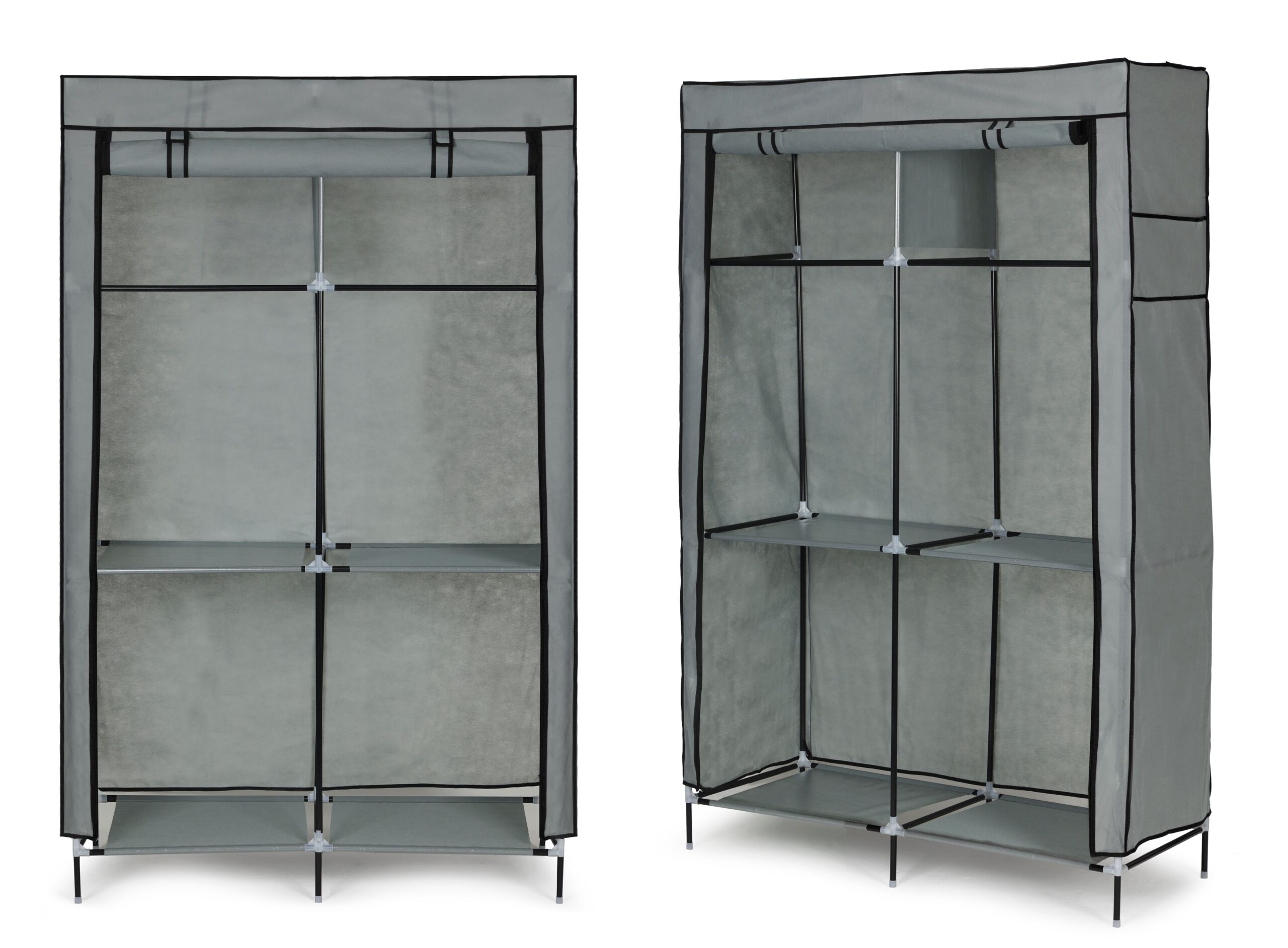 TEXTILE WARDROBE WITH SHELVES AND HANGING RODS
