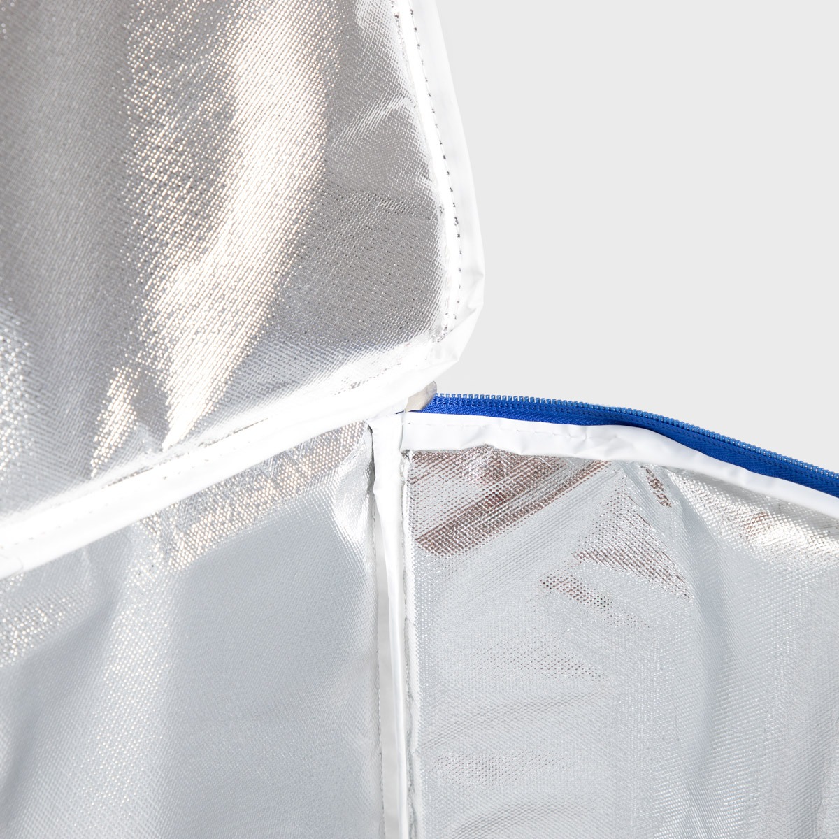 The 32 × 23 × 28 cm thermal bag is ideal for storing and transporting drinks, snacks and ready-made meals. Its interior has been fitted with an insulating layer to help keep products cooler for longer – especially on hot days. The adjustable shoulder strap and sturdy zip fastening ensure that the contents are comfortable to use and safe.