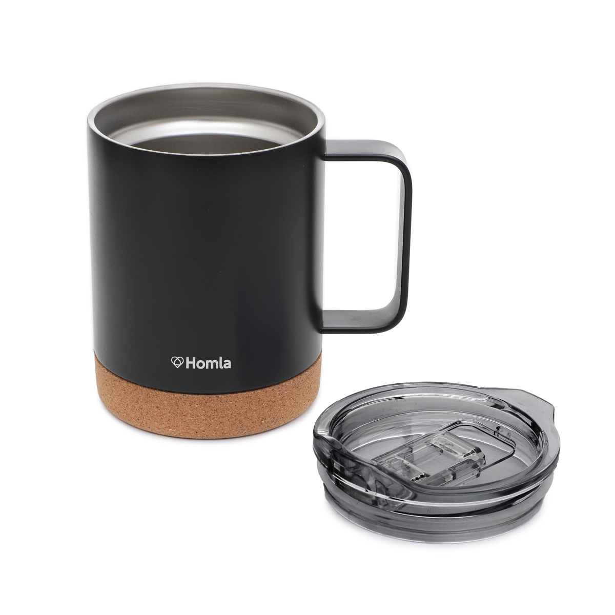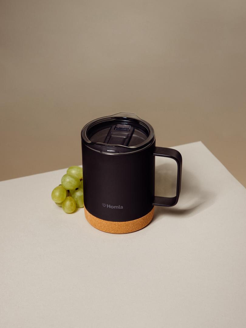 With the HOMLA TORREL thermal mug, you will be ableto enjoy the taste of warm tea for longer. Ideal for autumn and winter walks, as well as for work, school or university. The large handle allows you to hold it comfortably in your hand, and the cork bottom acts as a coaster to prevent discoloration on the table and has an anti-slip effect. Thanks to the transparent lid, you can easily identify the contents of the cup and check the level of your drink.