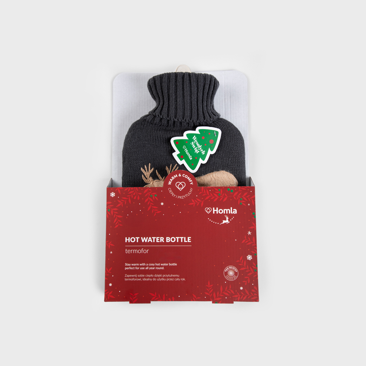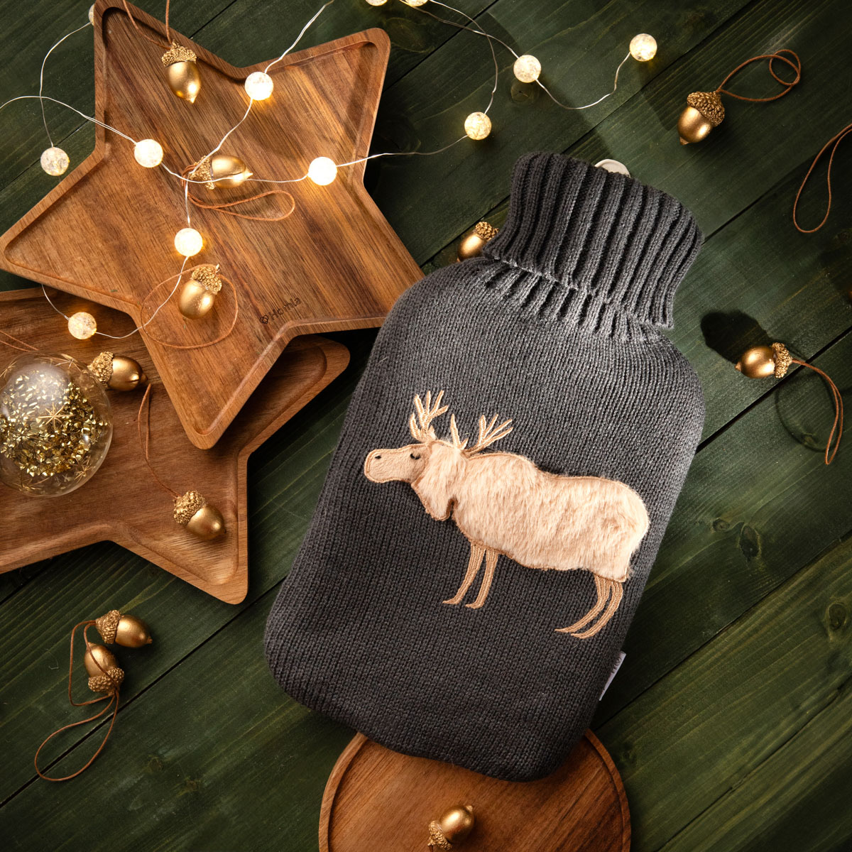 The JEWEL thermofor is the perfect companion for winter evenings, offering warmth in a stylish setting. The case is made of soft material for comfort and convenience. The dark green color and the embroidered moose motif add to its cosy and original character. With a capacity of 2 liters, it is perfect for soothing aches and pains or simply providing extra warmth on cold days.