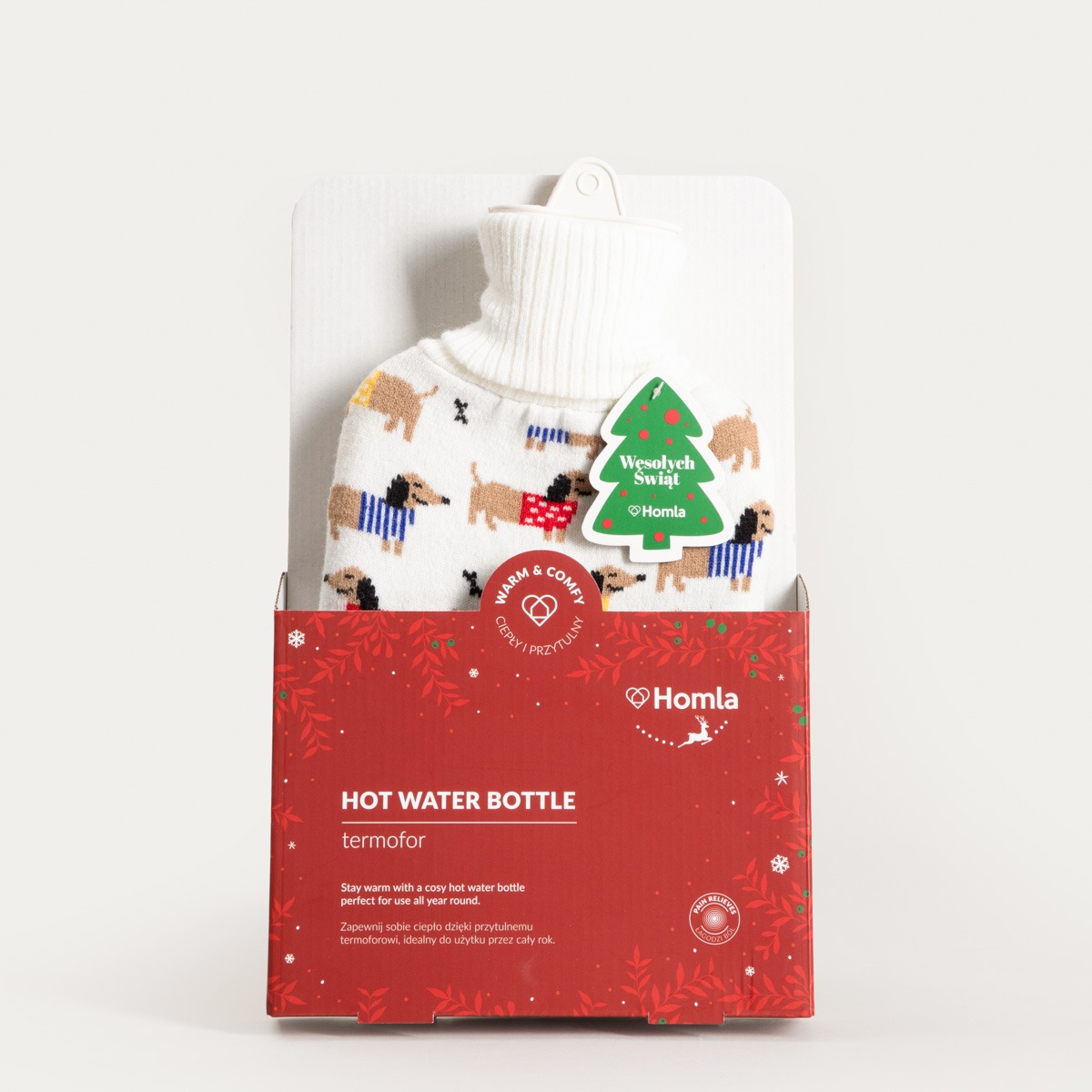 Ideal for warming up on winter evenings, relieving aches and pains or improving comfort, the SAMSON thermofor is a practical solution to many everyday ailments. Thanks to its capacity, it keeps warm for a long time, providing pleasant soothing and relaxation. It is great for use both at home – while relaxing on the sofa or before bed – and on the move when you need an extra source of warmth. The soft cover in a cute dachshund pattern not only adds to its charm, but also increases its comfort.