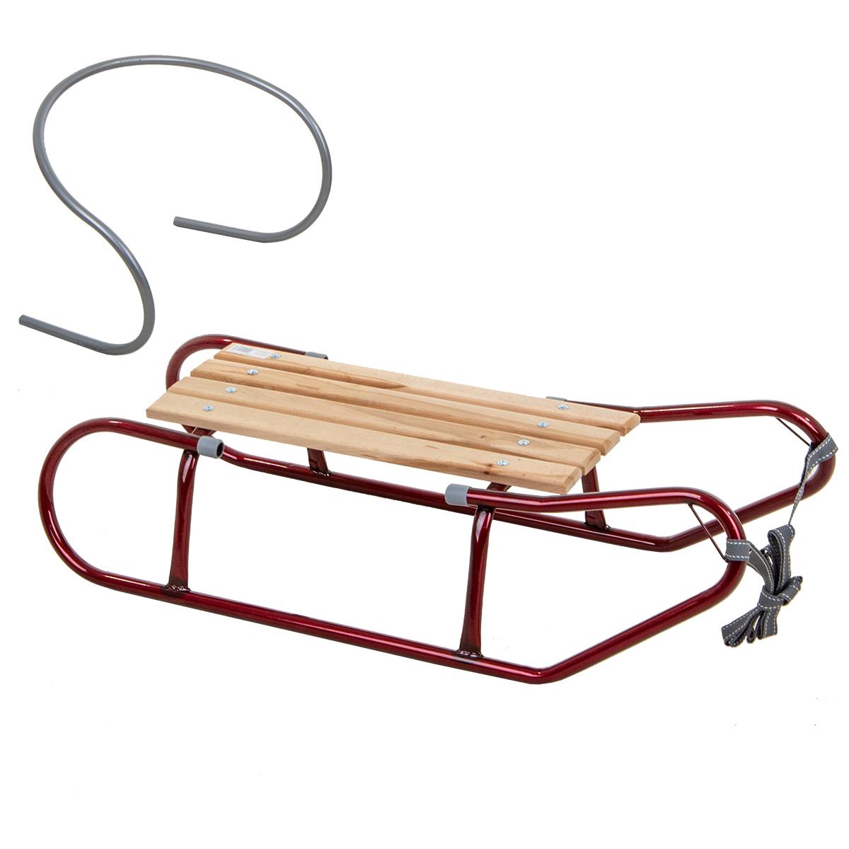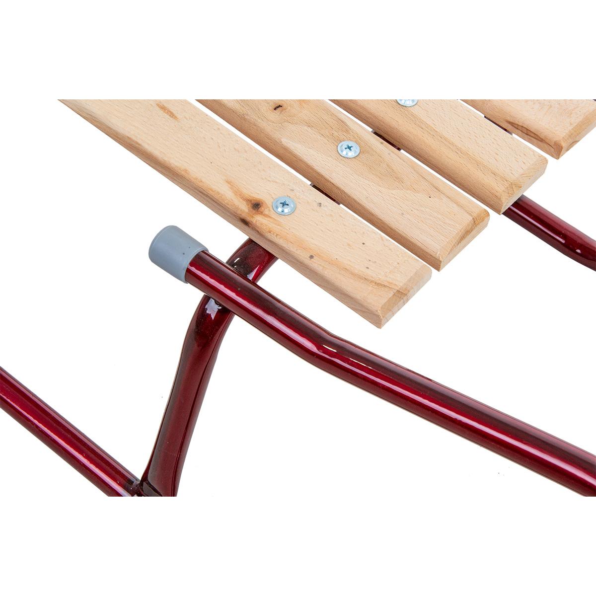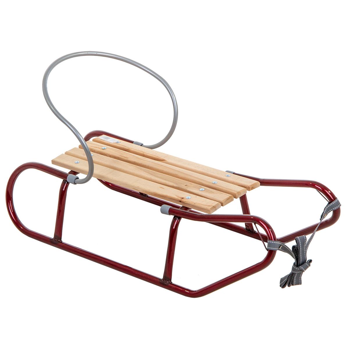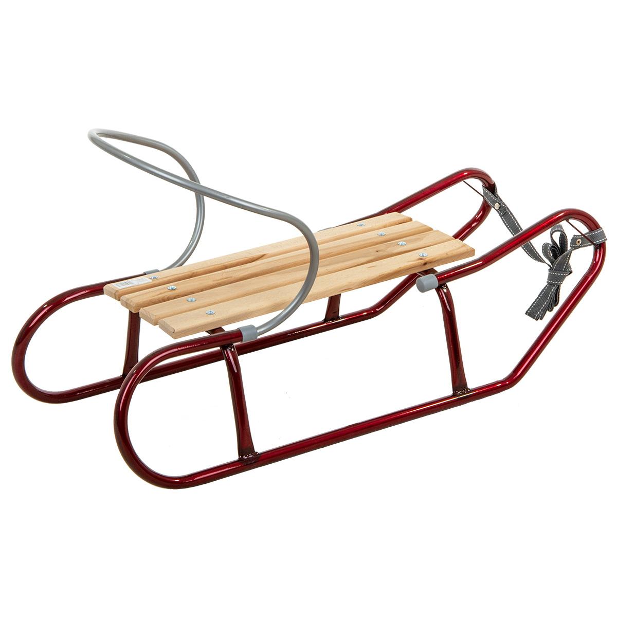 Steel and solidly bolted skids and wooden parts protected with the appropriate impregnation will give you the feeling of a very well made decision to buy them. Very easily removable backrest you can take off at any time, so your happy and curious toddler will be happy to use them for a long time. Equipped additionally with a long thick pull strap, which will make it easier to walk or pull the sled up the hill.
