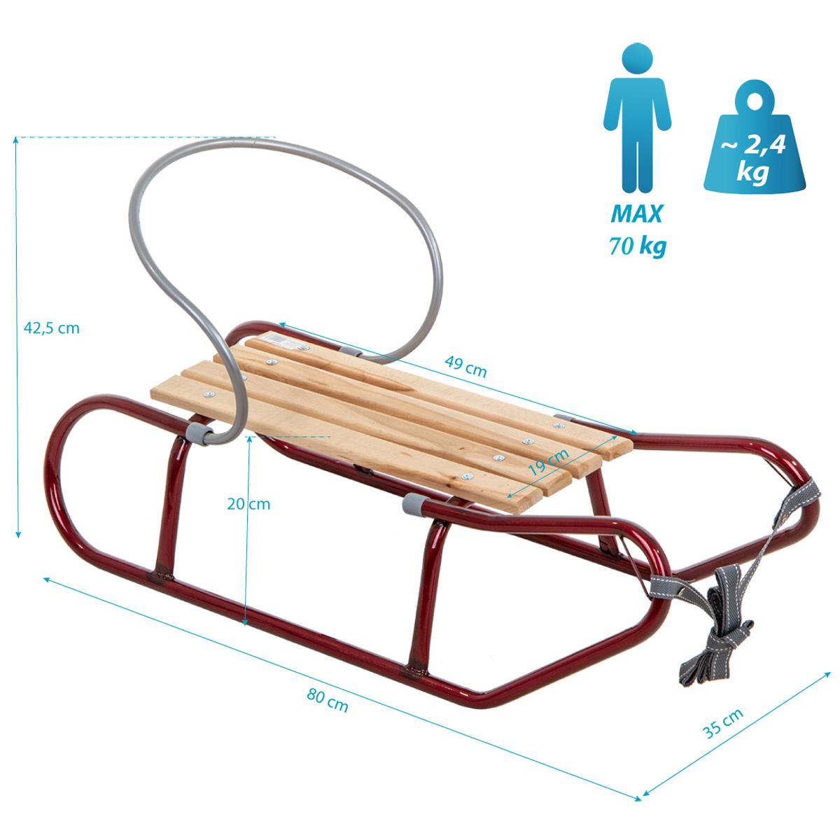 - Dimensions of the sled: 35 x 80 x 42.5 cm (W x D x H).