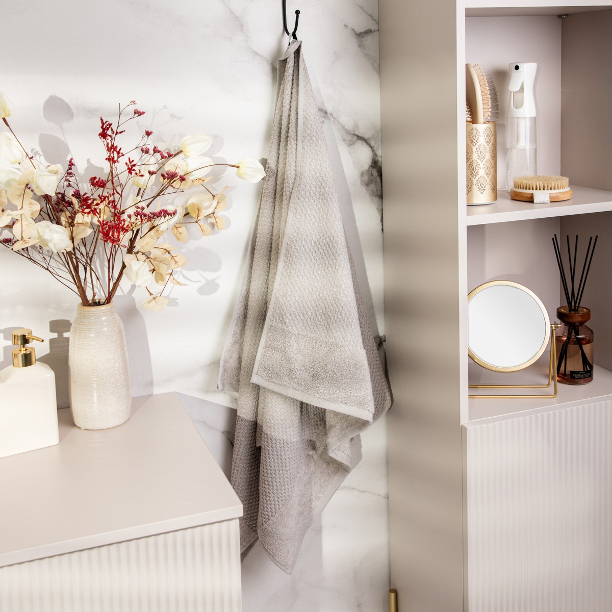 The NASIA towel is ideal for everyday use in the bathroom. Thanks to its properties, it will also prove useful when traveling, providing comfort, freshness and a perfect cover after every bath.