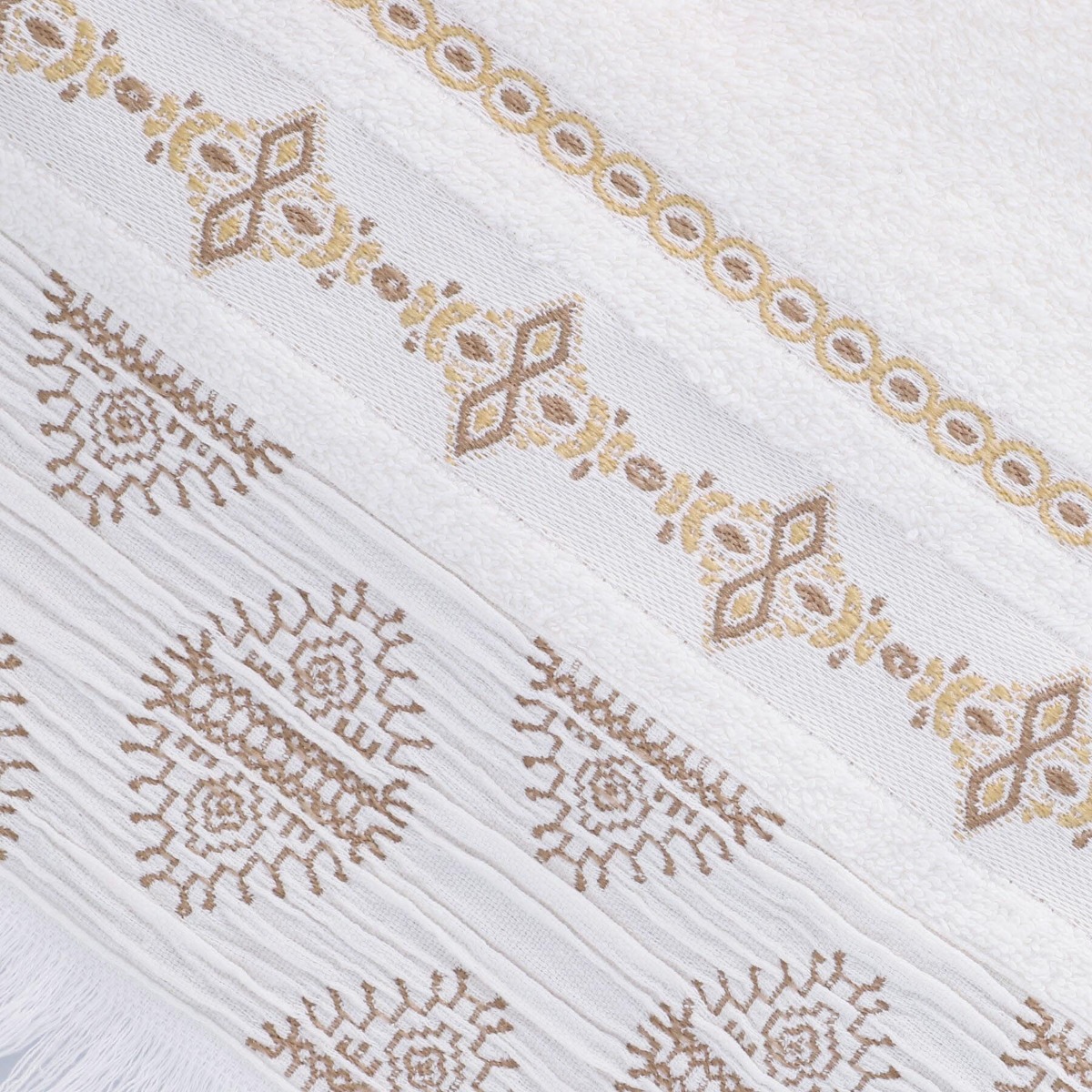 The SOLTA towel is a bathroom accessory measuring 70 x 130 cm. It has been entirely covered in a light beige color. The product’s great uniqueness is given by the charming Scandinavian patterns placed in its lower part. The minimalist, pleasant-to-touch tassels at the edges are an additional ornament.