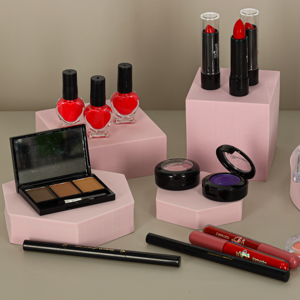 lipsticks, shadows, blushes, varnishes and nail styling accessories