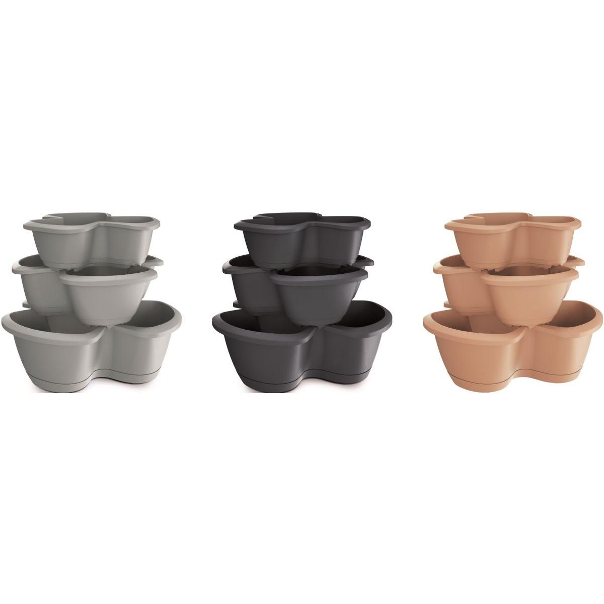 - The set consists of 4 parts: 3 flowerpots, 1 base