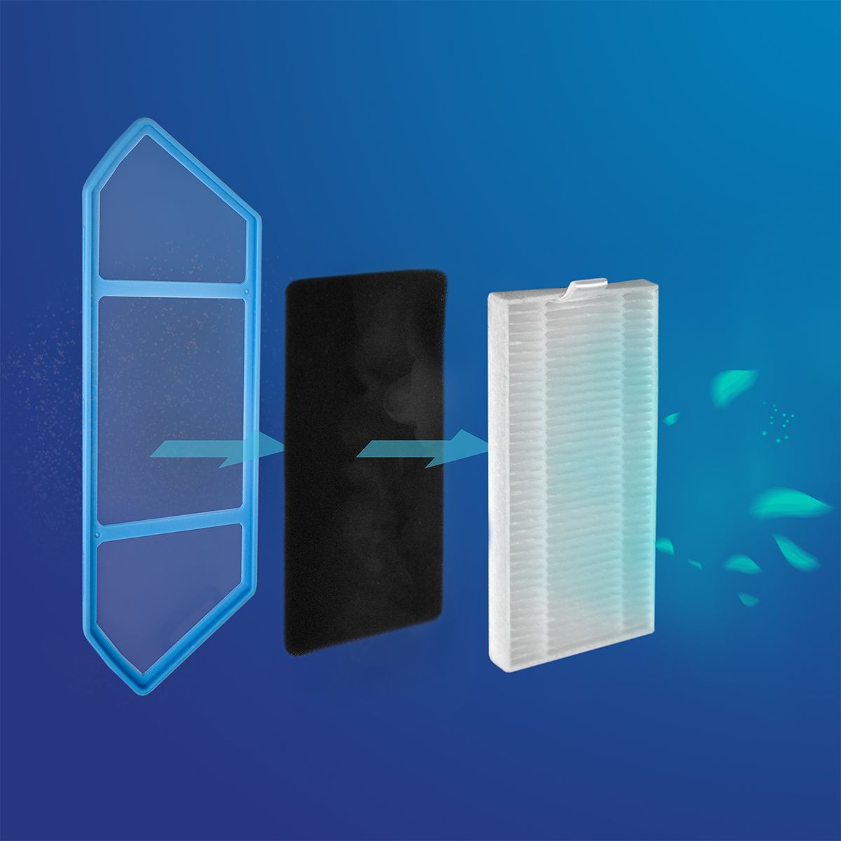 Modern purification technology with a HEPA 13 filter eliminates 99.97% of very small particles with a size of only 0.3 microns, such as viruses, bacteria, pollen, dust and animal hair.