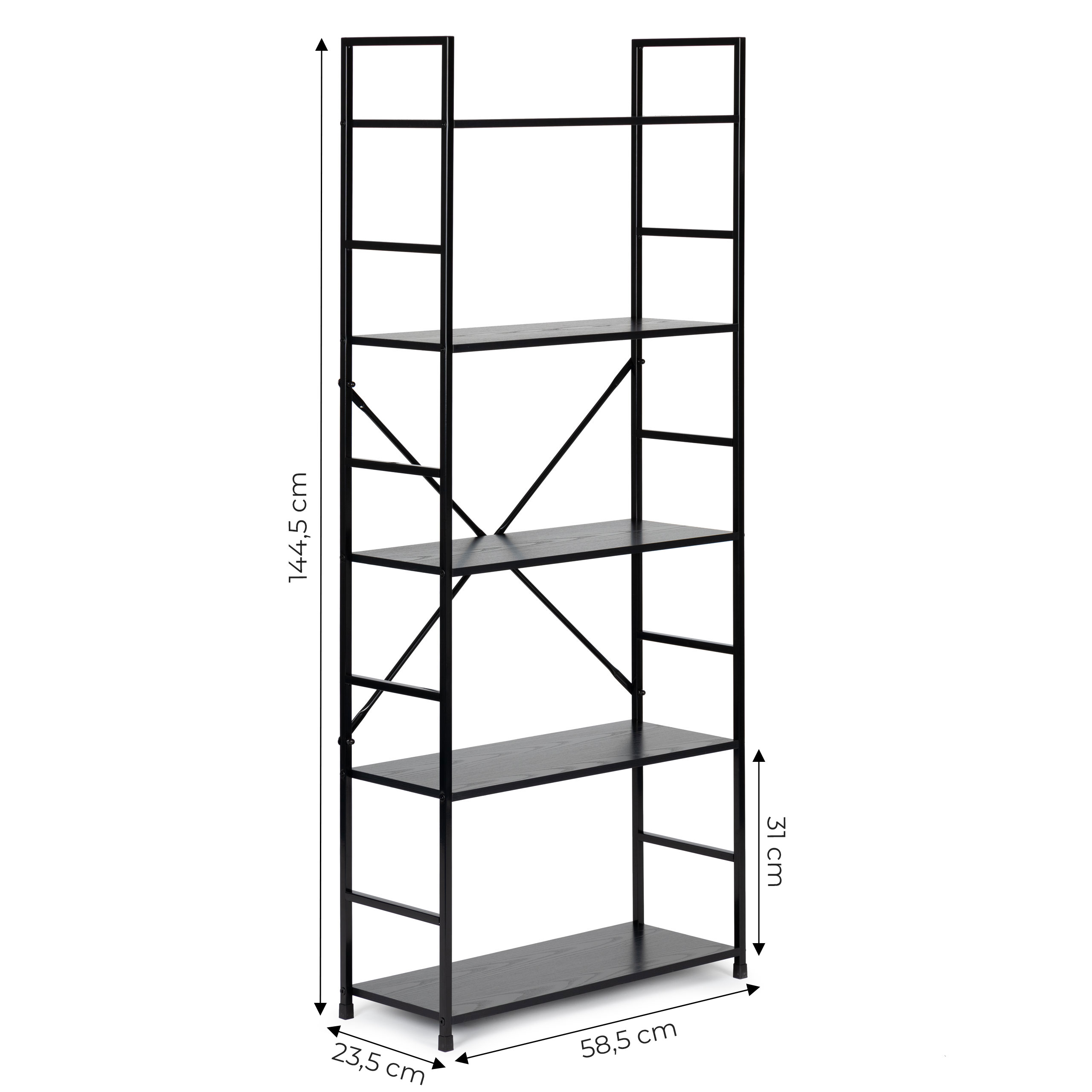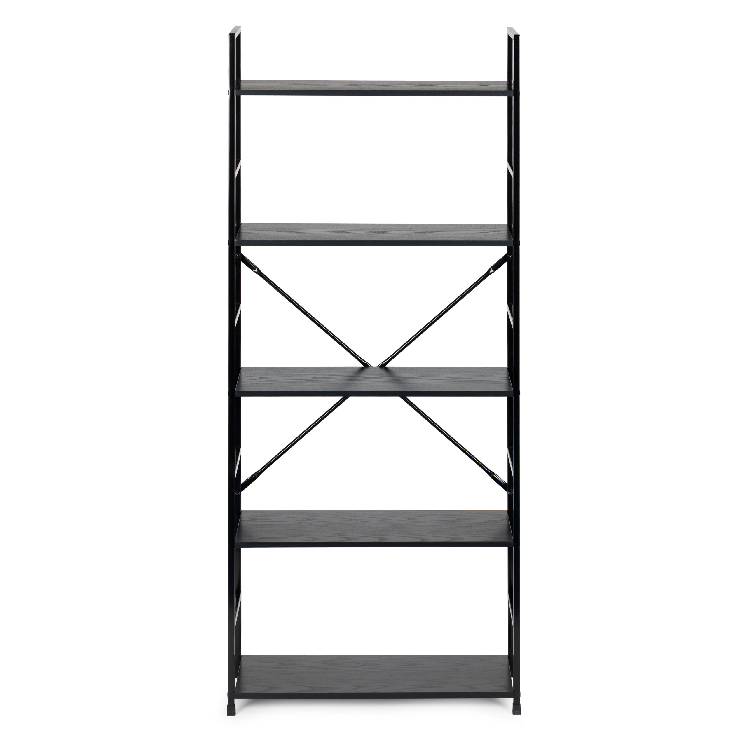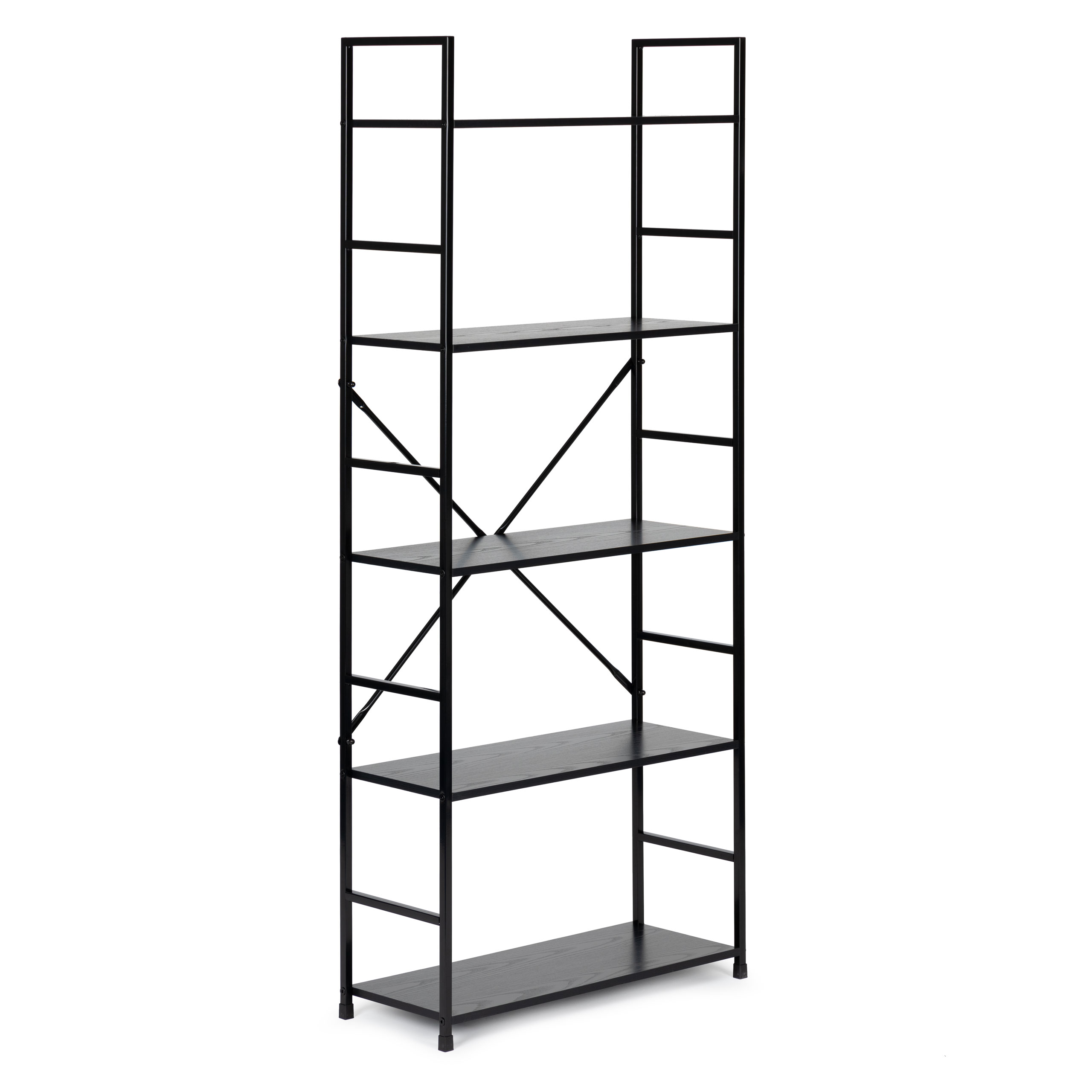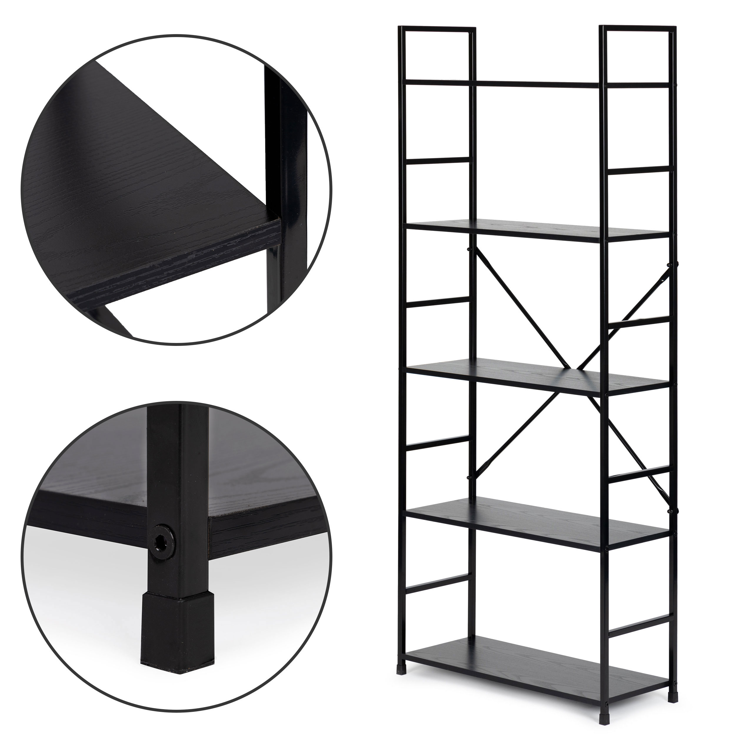 Wide modern LOFT wooden bookcase with 5 shelves, black ModernHome
