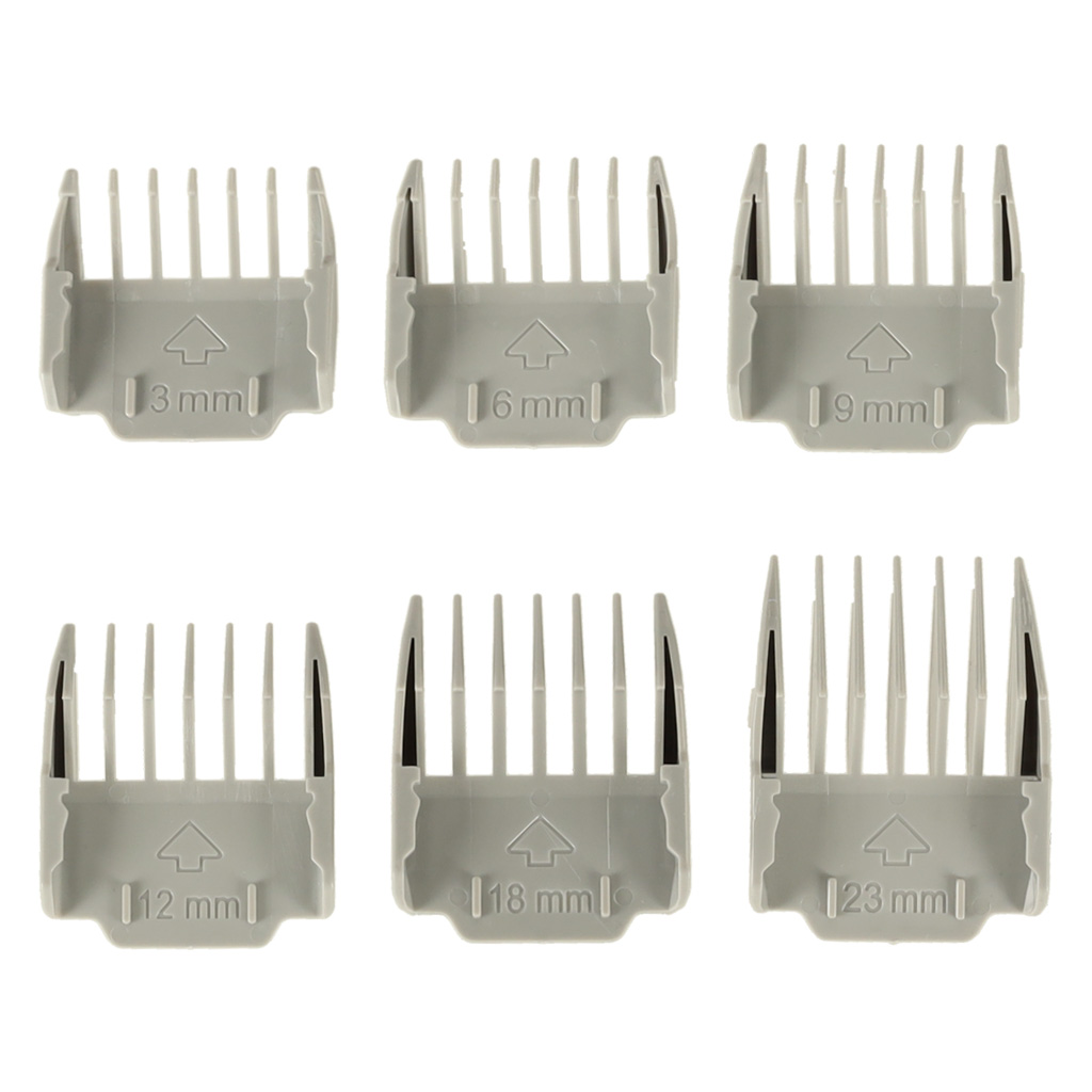 a clipper + six attachments that allow you to adjust the length of the cut (3mm, 6mm, 9mm, 12mm, 18mm and 23mm)