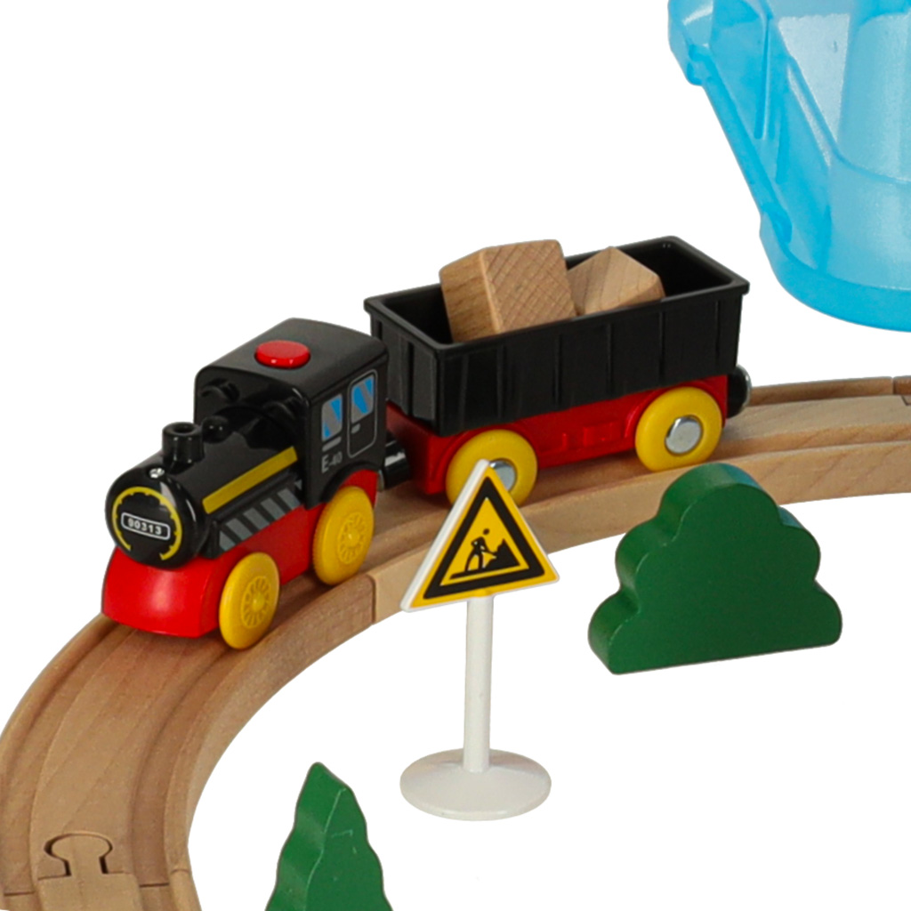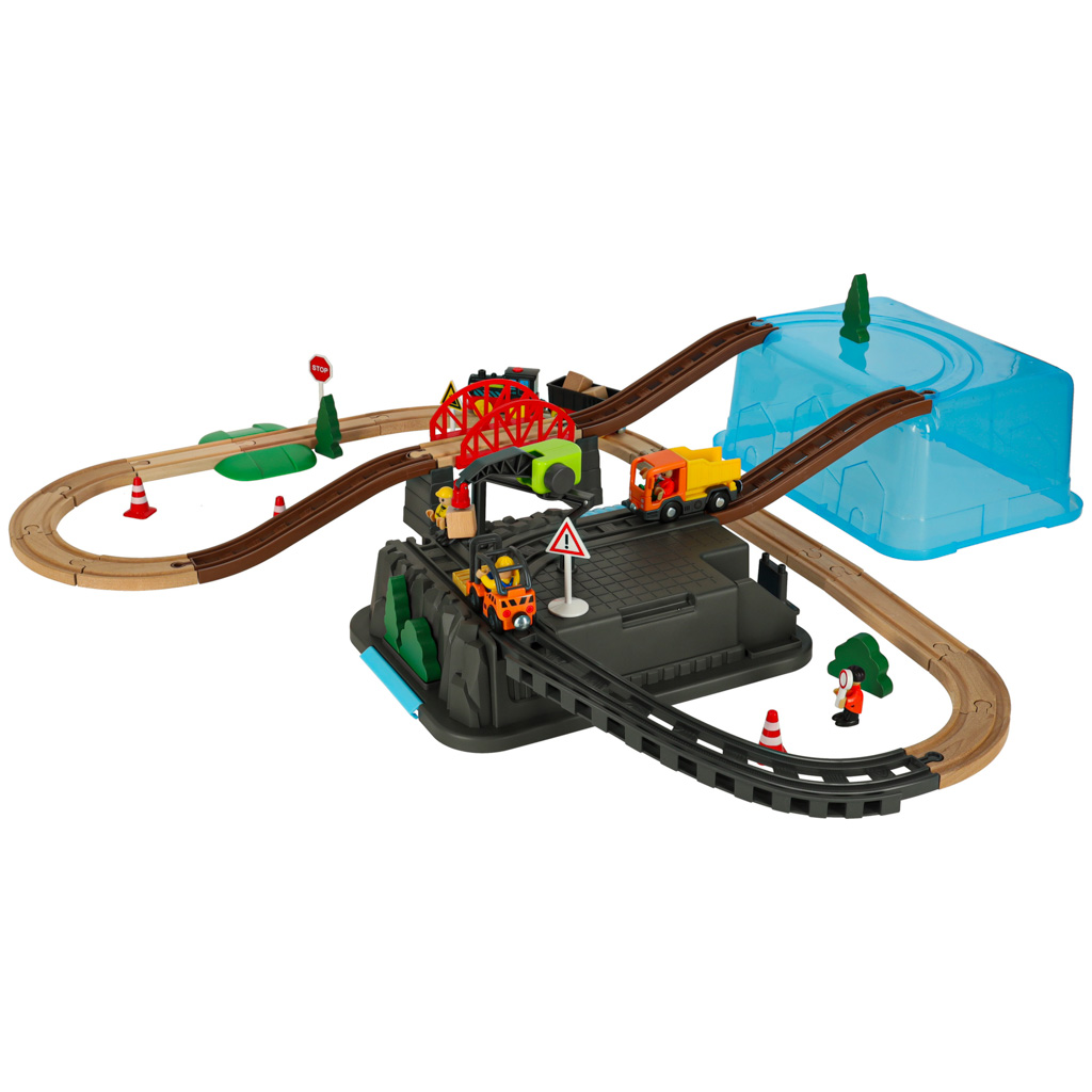 is a toy that opens up the fascinating world of construction and transportation for your child . The blocks are used to create a winding track, full of different hills, on which the wooden train rides independently.