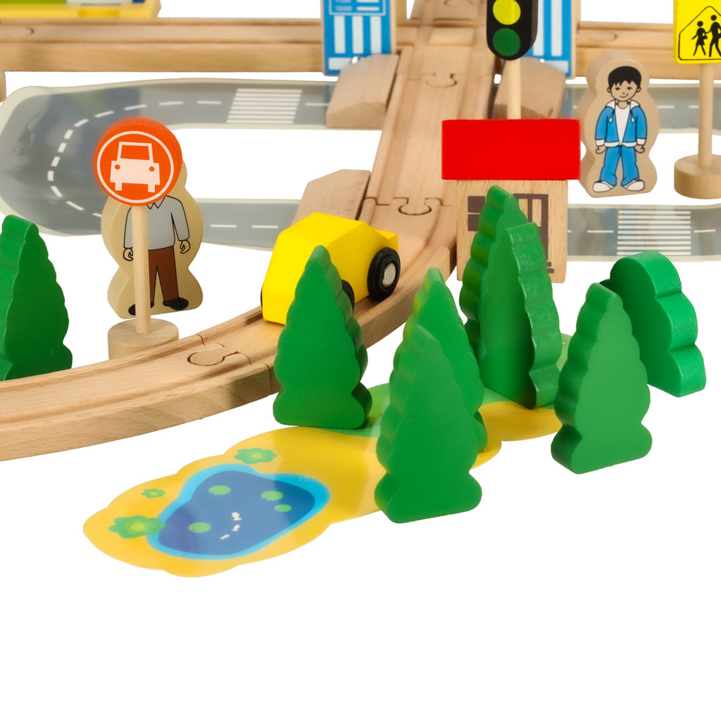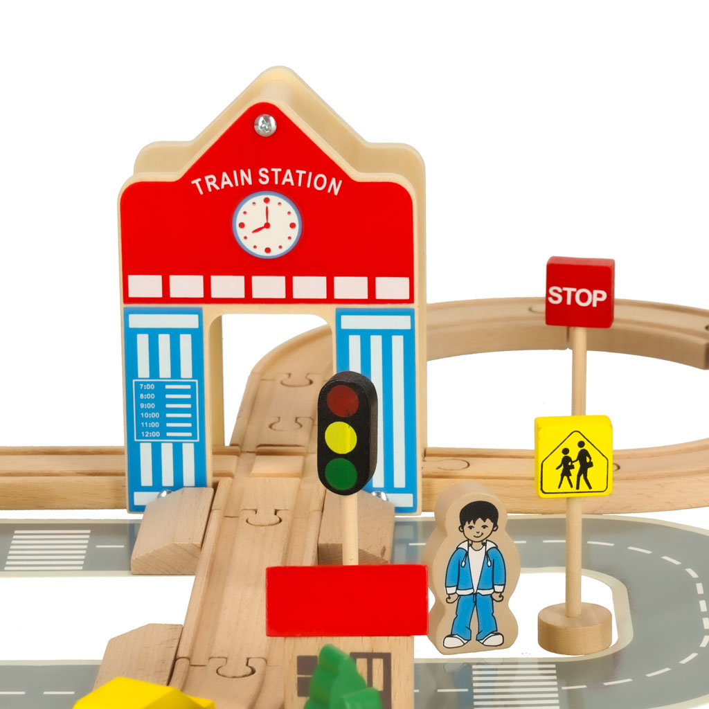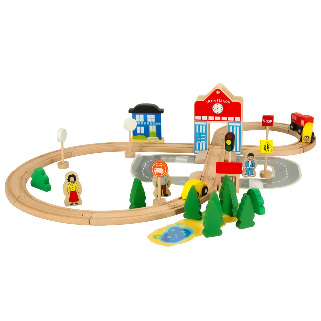WOODEN TRAIN TRAIN LOCOMOTIVE CITY 50 ELEMENTS
