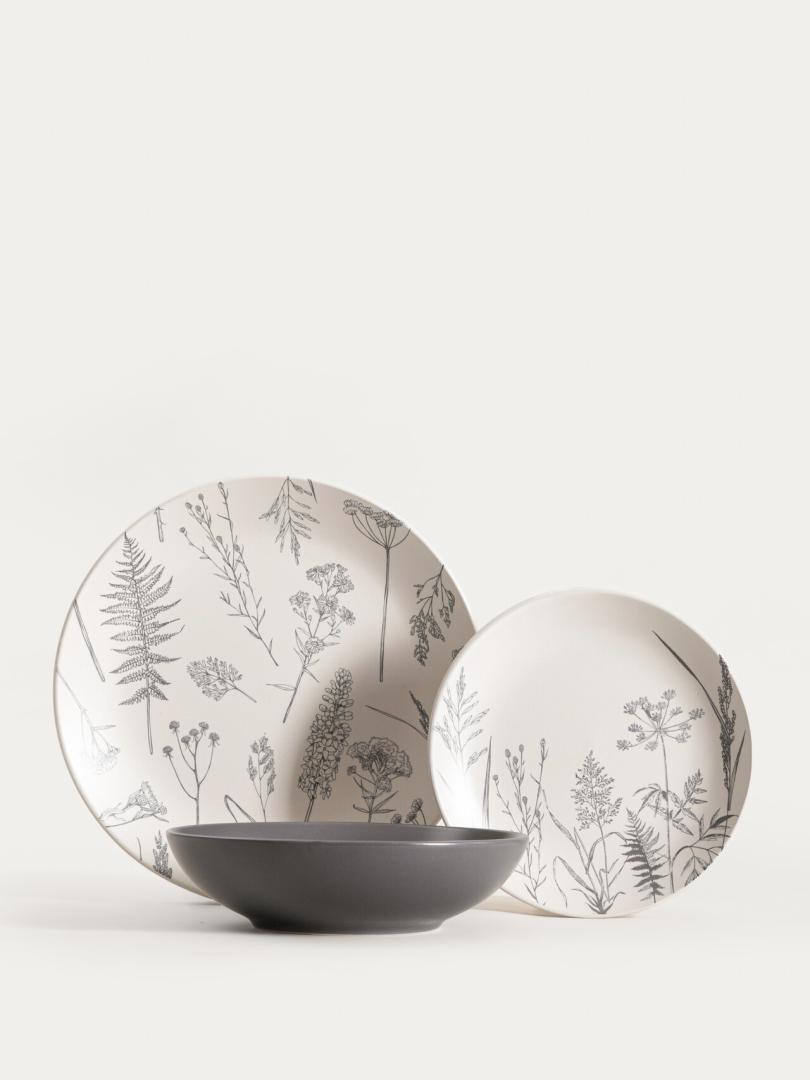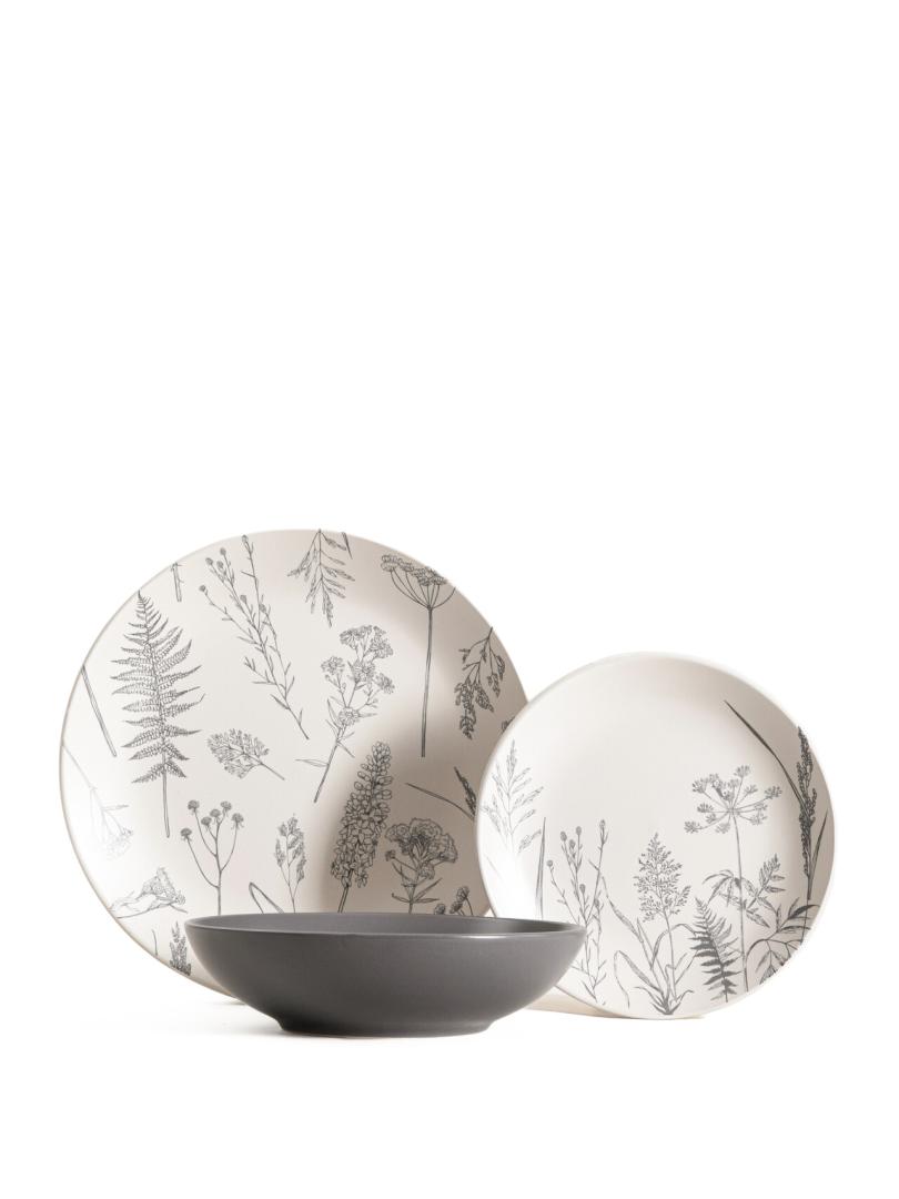 Zastawa stołowa | BARI | szara w motyw kwiatów 18szt | | 752452