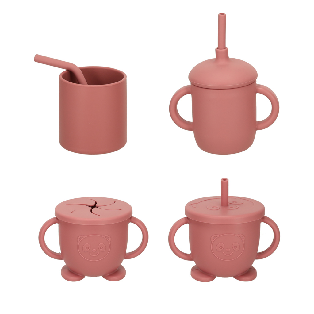 Trauku komplekts ir izgatavots no pārtikai droša silikona, kas garantē, ka tie nesatur kaitīgas vielas un ir lieliski piemēroti bērnu maigajai mutītei.