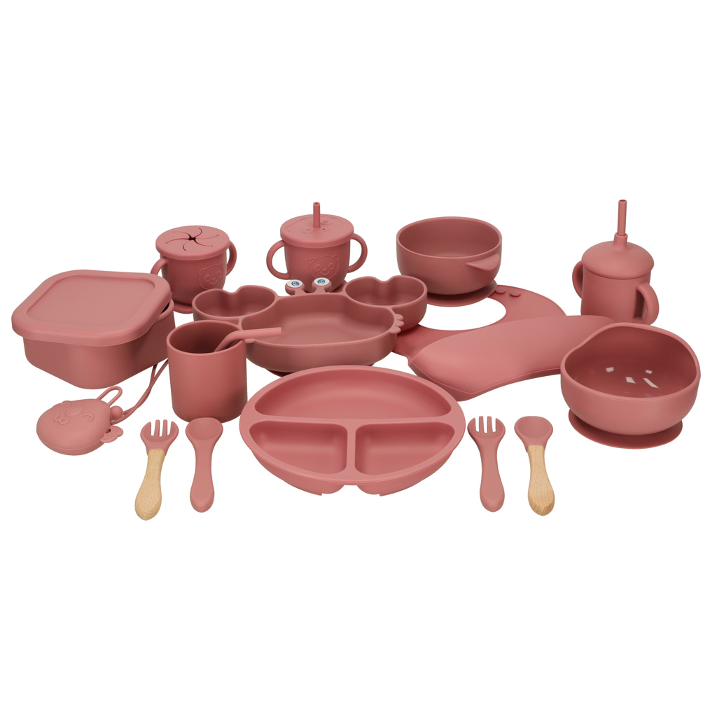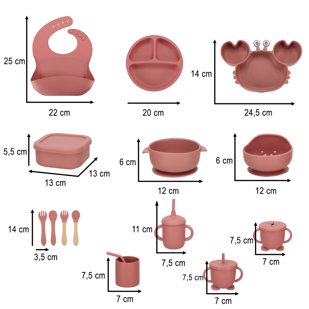 BĒRNU SILIKONA TRAUKU KOMPLEKTS KRABIEM 19 EL TUMŠI ROZĀ KRĀSĀ