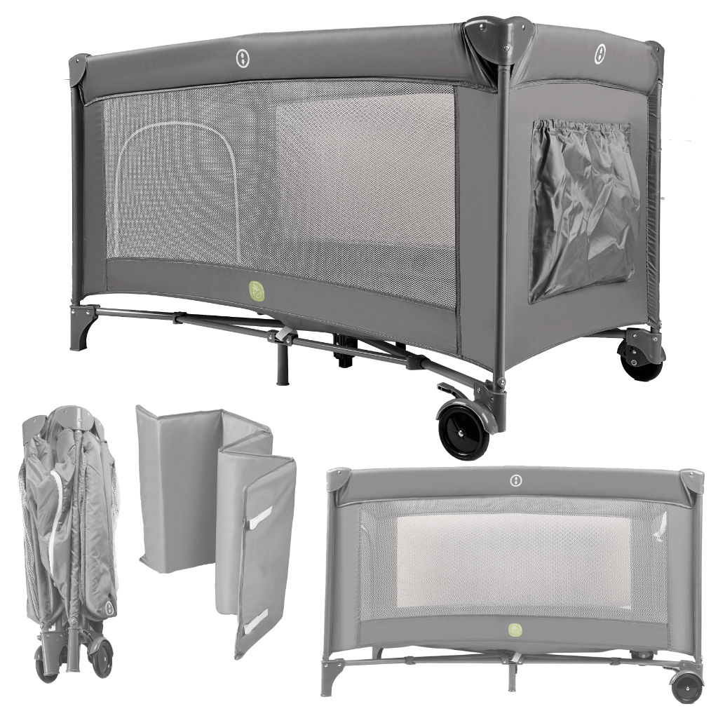 Bērnu gultiņai ir papildu sānu ieeja ar rāvējslēdzēju, kas ļauj bērnam tajā iekāpt patstāvīgi. Plaša kabata nodrošina, ka visas nepieciešamās lietas vienmēr ir pa rokai. Stabilās un elpojošās tīklveida malas nodrošina labu gaisa cirkulāciju. Velcro stiprināmais matracis nodrošina ērtu atpūtas virsmu, kas veicina mierīgu miegu jūsu mazulim.