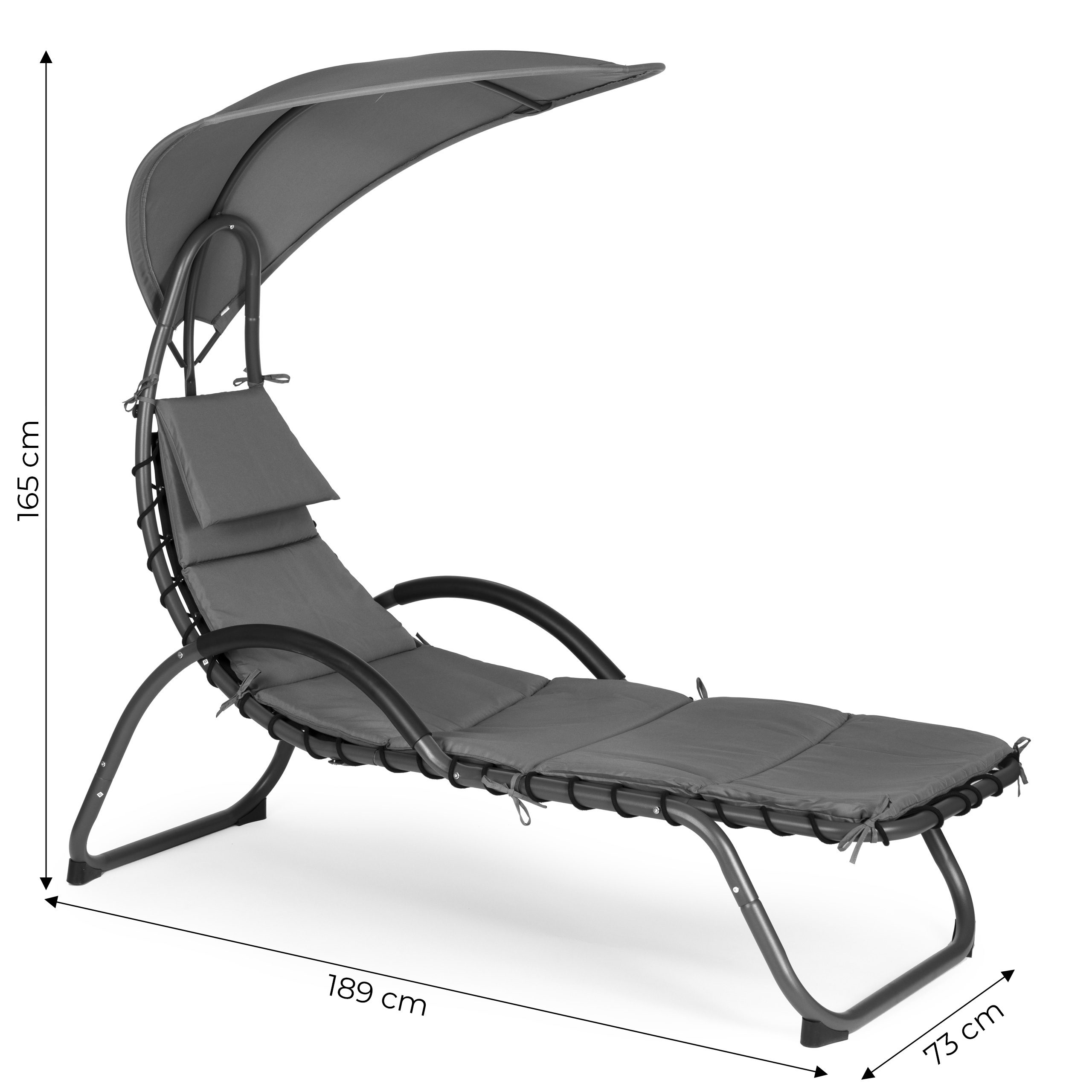 • Šim atpūtas krēslam ir īpašs jumtiņš, kas nodrošinās ēnu saulainās dienās. Nojumes konstrukcija ir izgatavota no metāla elementiem un irizturīga pretvēja brāzmām. Nojumes pārklājums ir izgatavots no tāda paša izturīga materiāla kā nojumes matracis.