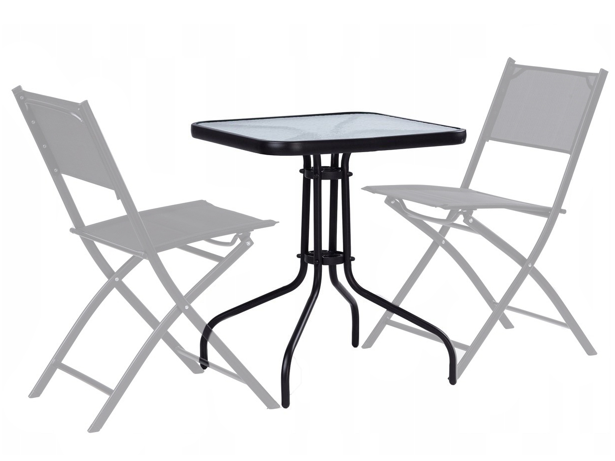 Kvadrātveida galda virsma ar izmēriem 60×60 cm nodrošina vietu 4 cilvēkiem, kuri varēs ērti novietot uz tā savus dzērienus un pat ēst ēdienu. Metāla konstrukcija nodrošina stabilitāti, un rūdītā stikla virsma padara galdu izturīgu un drošu pat pie lielām slodzēm.