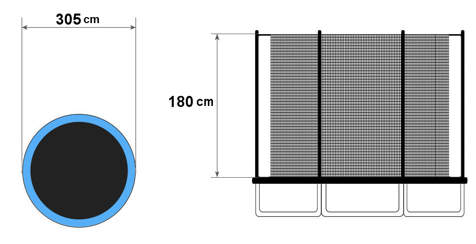 - Tramplīna diametrs: 305 cm – 10 pēdas