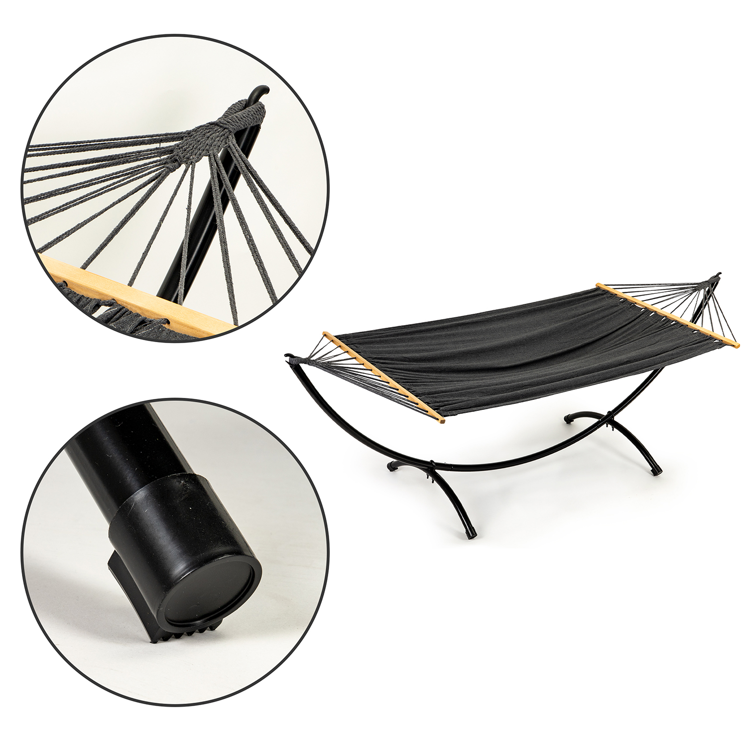 Šūpuļtīkls ir izgatavots no izturīga auduma, kas ērti pielāgojas ķermenim. Ar atbalsta auklām ieaustie koka stieņi nodrošina, ka gulēšanas virsma paliek pienācīgi saspriegota un līdzena.