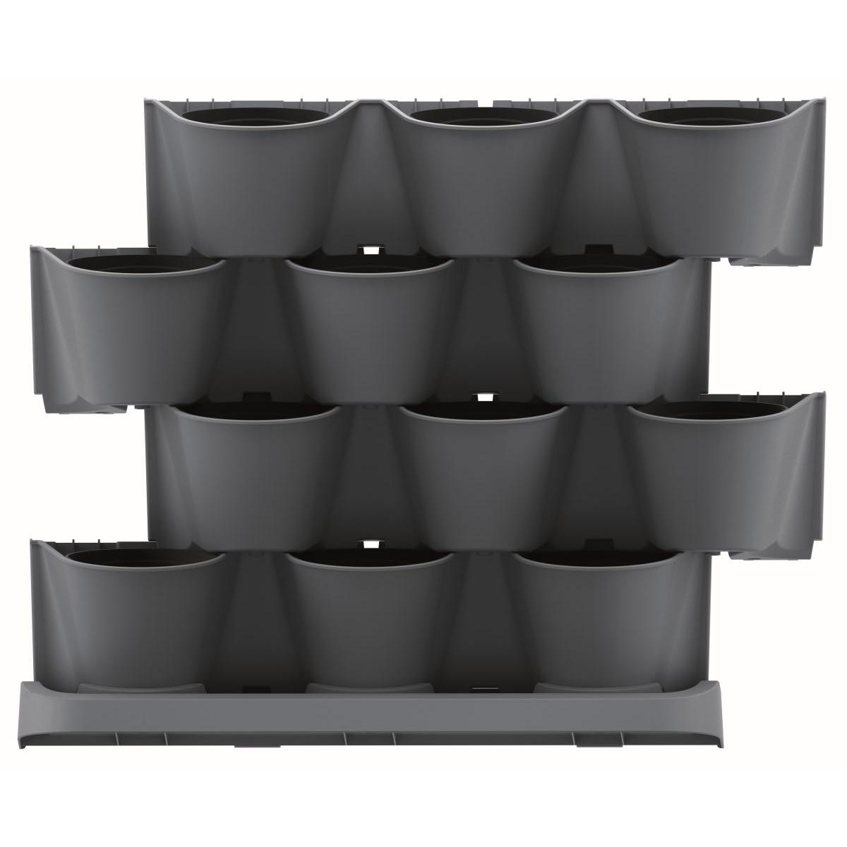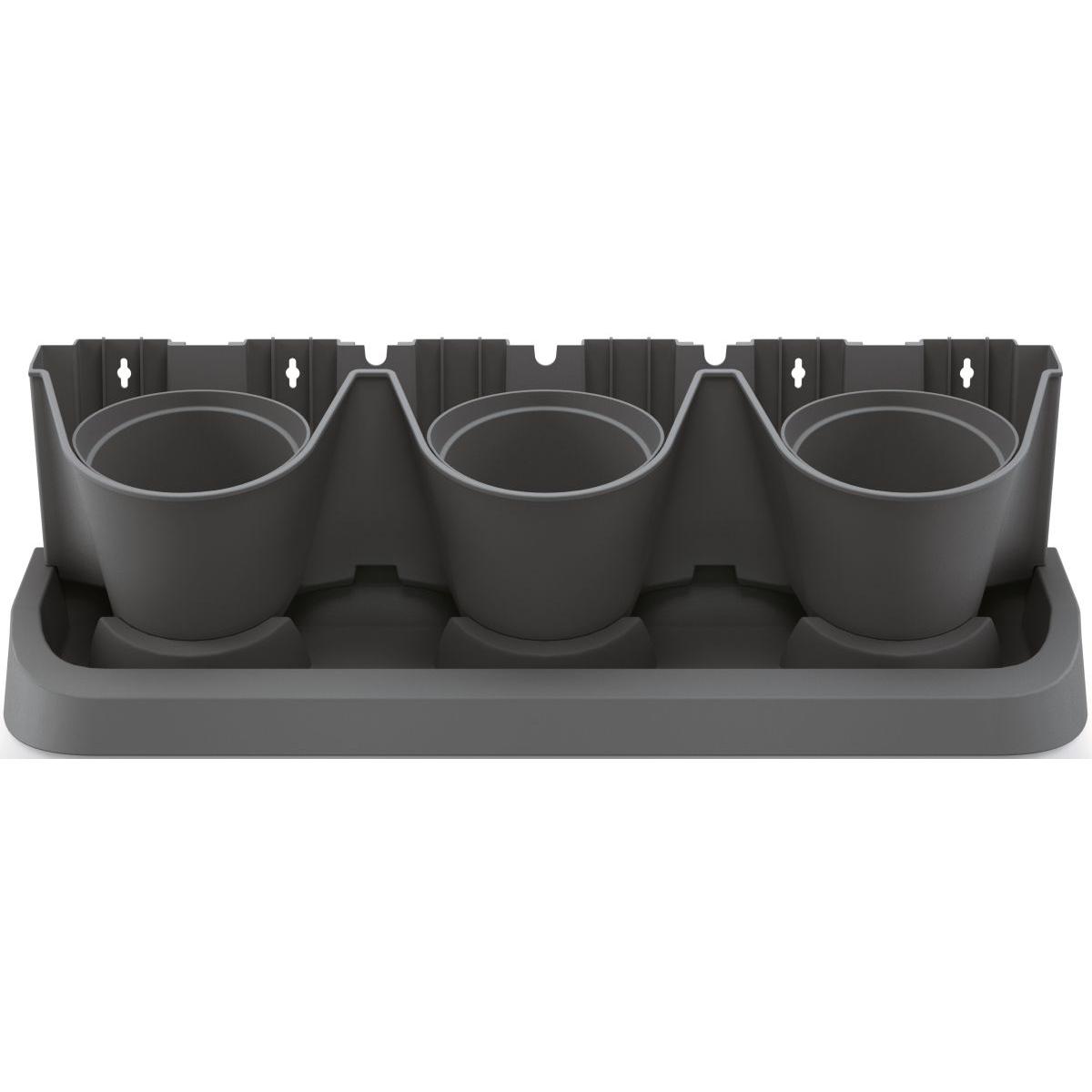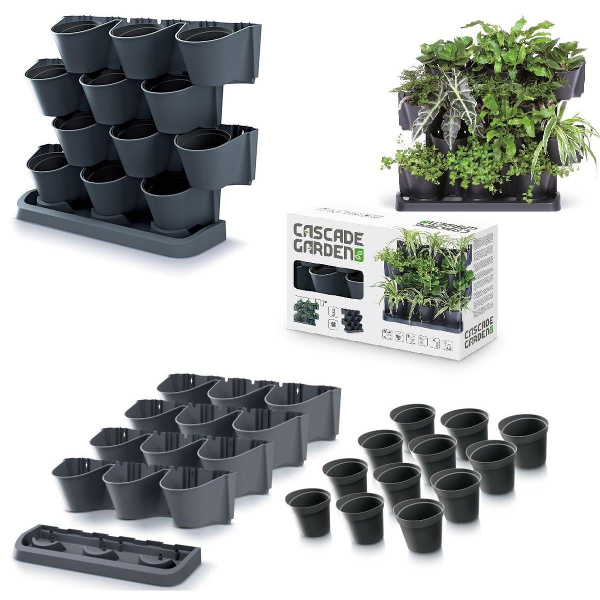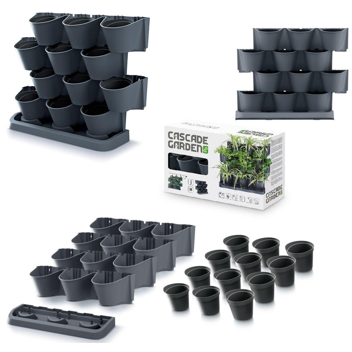 - Komplektā ir 21 detaļa: Komplektā ietilpst: 4 moduļi ar 3 caurumiem podiem, 12 puķu podi, 1 drenāžas pamatne, 8 savienojumi ar citiem moduļiem.