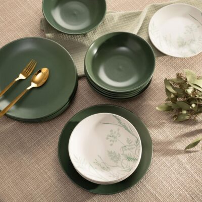128,90 €Столовая посуда BARI — 18 предметов, бежевый с цветочным рисунком Привнесите в свой дом нотку природы и элегантности с помощью нашей уникальной посуды из керамогранита. Этот набор из 18 предметов идеально подходит как для повседневной трапезы, так и для особых случаев. Особенности продукта: Материал: Высококачественный керамогранит обеспечивает долговечность и устойчивость к повреждениям.Цвет: Нежный бежевый, который…