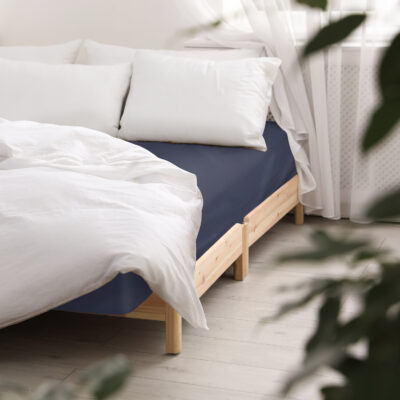 Простыня из хлопкового сатина на резинке темно-бирюзовая 042/200×220