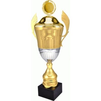 Золотая металлическая чашка с крышкой Размеры: H-47,5 см; R- 140 мм