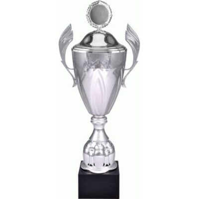 Высокий бокал из блестящего золота, с широкой чашей с удобными ушками и крышкой. Параметры: ? высота чашки: 44 см? диаметр чаши: 14 см? цвет: золото? материал: пластик, металл? размеры тарелки: 0,85×0,4 см