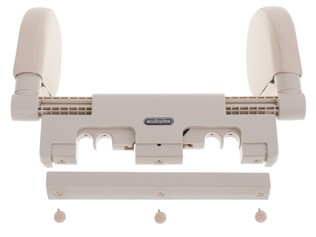 Простой, быстрый и интуитивно понятный монтаж. Его нужно прикрепить к перекладинам автомобильного подголовника. Для этого нужно открутить задние винты в подголовнике и выбрать подходящий по размеру чехол для перекладины. Хорошо подобранный чехол стабилизирует подголовник и не даст ему смещаться из стороны в сторону во время движения. Прикрепите подголовник к перекладинам и прикрутите заднюю крышку. Вы можете установить его на передние и задние сиденья, единственноеусловие — подголовник не должен быть прочно прикреплен к сиденью.