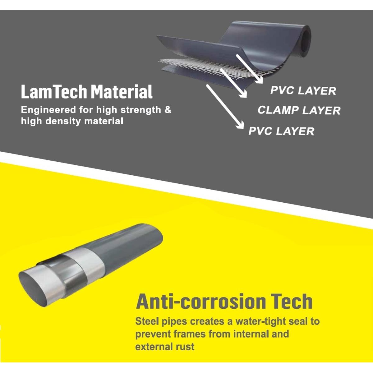 Этот бассейн имеет усиленный каркас с технологией ANTI-CORROSION, которая обеспечивает превосходную защиту от ржавчины и повреждения влагой. Это позволяет бассейну сохранять свою прочность и эстетичный внешний вид даже после многих сезонов использования.