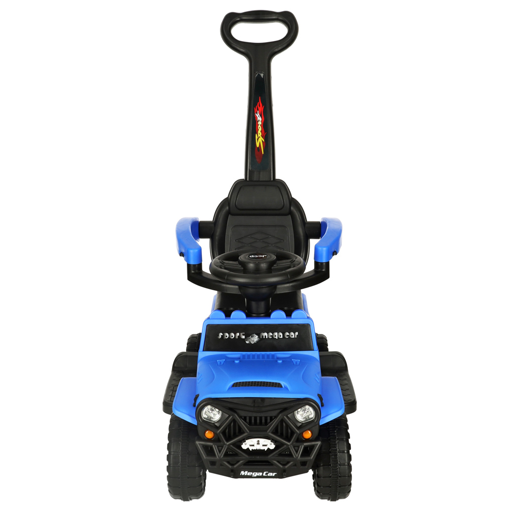 Синий внедорожник, похожий на автомобиль, — это игрушка, которая обеспечит вам часы фантастического развлечения! Он будет сопровождать вас во время совместных прогулок — благодаря спинке и поручням малыш сможет удобно расположиться, пока вы толкаете машину. А когда ваш ребенок подрастет, вы сможете быстро превратить игрушку в самоуправляемый автомобиль. Отталкиваясь ногами, ваш малыш почувствует себя настоящим водителем! Звуковые и световые эффекты обеспечат прекрасные впечатления от каждой поездки.