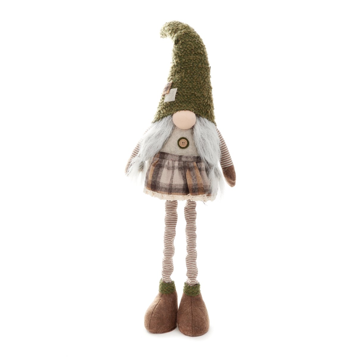 Зеленый гном ALTIN — это необычное и игривое рождественское украшение, привлекающее внимание своим очаровательным внешним видом. У гнома есть отличительные черты: очаровательный зеленый колпачок и подвижные ножки, которые можно удлинять или укорачивать.