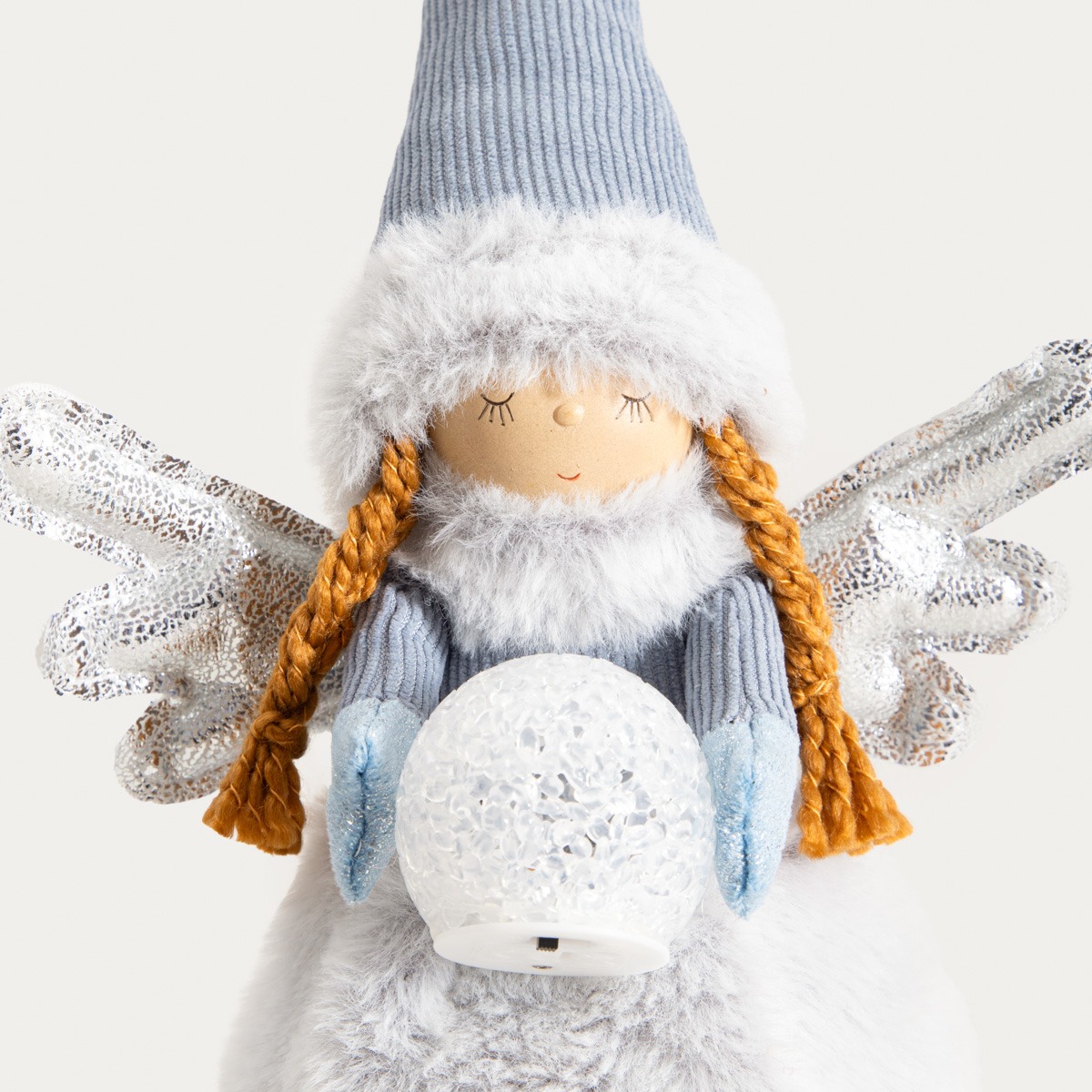 Рождественский гном AURIE — это уникальное украшение, сочетающее в себе зимнее волшебство, легкие акценты ангела и современную светодиодную подсветку. Светло-голубые цвета в сочетании с белым и мягким мехом придают ему мягкость и элегантность. Благодаря светящемуся шару гном будет освещать ваш интерьер, привнося сказочную атмосферу в рождественские композиции.