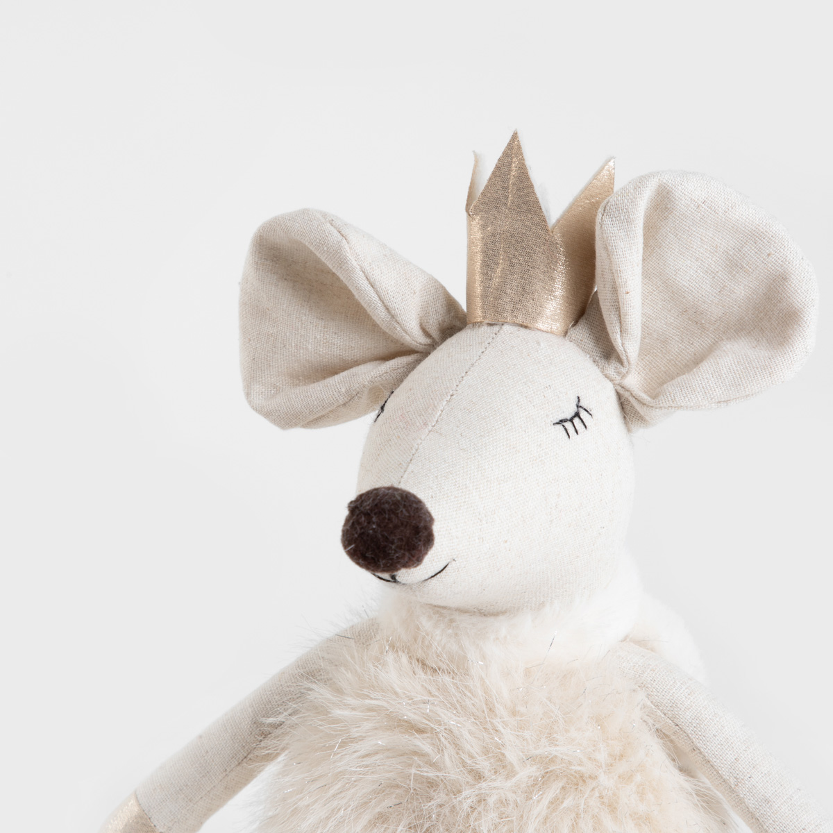 Мышка DIXIE идеально передает тепло и волшебство Рождества. Мягкие бежевые цвета в сочетании с пушистым мехом создают элегантный и уютный образ. Золотая корона и тщательно проработанные детали подчеркивают уникальный характер этого рождественского украшения, которое привнесет нотку сказочной атмосферы в любой интерьер.