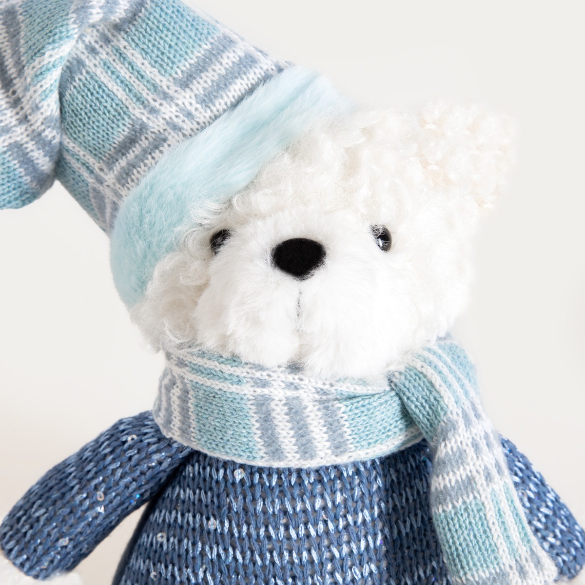 Пусть волшебство Рождества придет в ваш дом — рождественский гном Мистер Мишка в голубом наряде станет прекрасным дополнением к вашим рождественским украшениям. Одетый в вязаный джемпер с пуговицей, очаровательную шапочку и шарфик, мишка готов украсить ваш дом в холодные зимние дни, привнеся в интерьер уютную рождественскую атмосферу.
