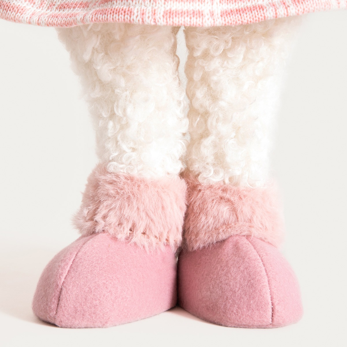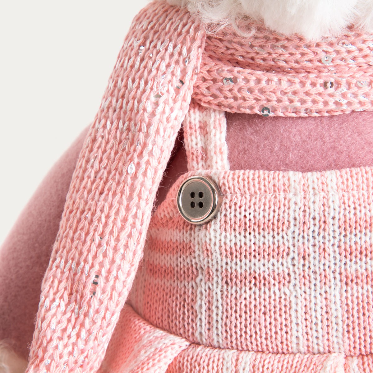 Этот очаровательный рождественский гном в розовой одежде порадует вас своим пушистым мехом и тщательно проработанными деталями. Симпатичное платье с лямками, мягкий шарф, очаровательная шапочка и пинетки создают неповторимый стиль, благодаря чему миссис Тедди идеально дополнит любой зимний интерьер. Украсьте свой дом к праздникам уникальным гномом!