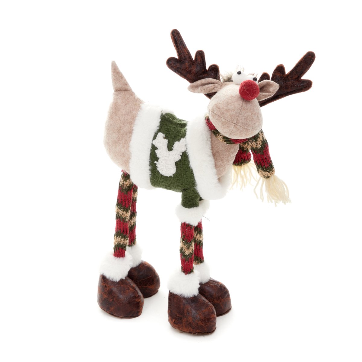 Стоящий олень RENNIE Christmas — это очаровательное и традиционное рождественское украшение, которое добавляет очарования и волшебства Рождеству. Он украшен праздничными деталями, а его поза придает ему очаровательный вид.