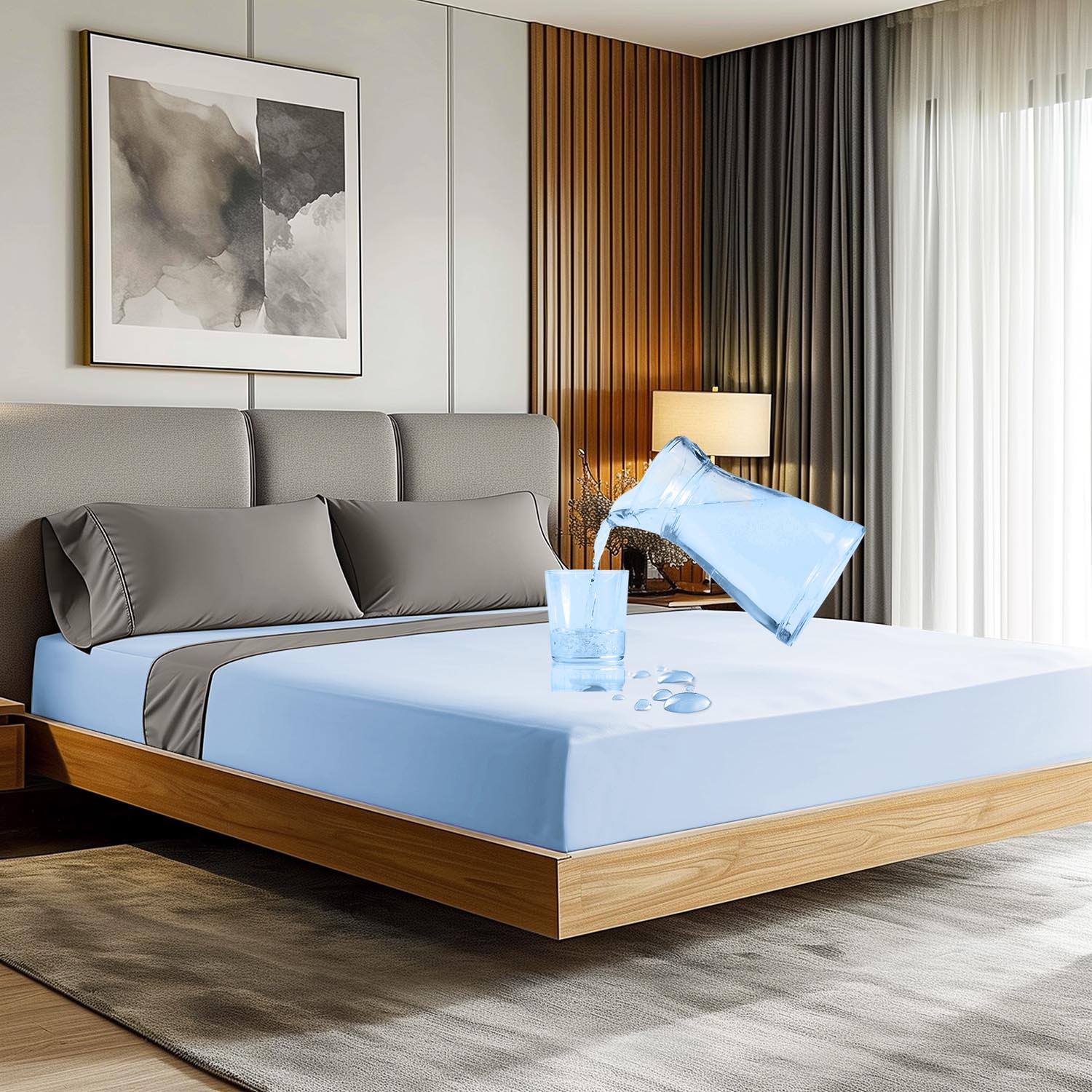 Защитная простыня с резинкой Article SG выполняет функции простыни и защитника одновременно. Она сделана как обычная простыня с резинкой. Она состоит из двух видов материала: ткани джерси с защитным полиуретановым (PU) слоем и тонкого трикотажа джерси, пришитого к боковой стороне протектора. Преимуществом изделия является его паропроницаемость (воздухопроницаемость). Ткань имеет более мягкую и нежную структуру, чем протектор, и мембрану, которая регулирует температуру тела, гарантируя комфортный сон без ощущения жары. В дополнение к этим преимуществам она обладает всеми свойствами протектора (непроницаема для пыли, пылевых клещей, жидкостей и т. д.). Его можно использовать с эластичными одеялами, а также для детей. Изделие выполнено в шести цветах (белый можно стирать при 95oC, остальные цвета — при 60oC). Продукт является альтернативой стандартной простыне в сочетании с протектором. Защитные простыни на резинке изготавливаются из сертифицированных тканей.
