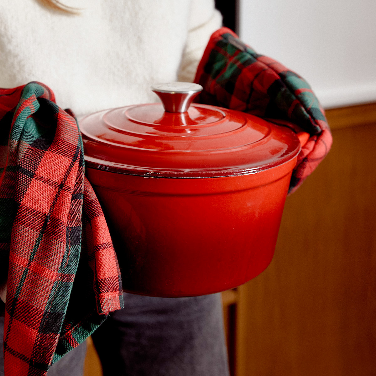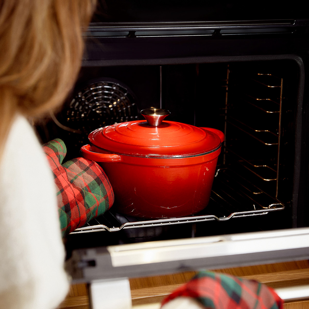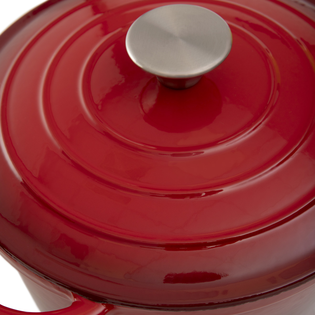 Чугунная кастрюляHOMLAANDREAS позволяет готовить вкусные блюда на всех типах плит и в духовке. Он идеально подходит для использования в качестве посуды для запекания или жаропрочной посуды для запекания. Мы покрыли ее красной эмалью, благодаря чему она легко моется и прекрасно выглядит. Вы можете смело ставить ее на стол, чтобы подавать горячие блюда прямо из кастрюли.
