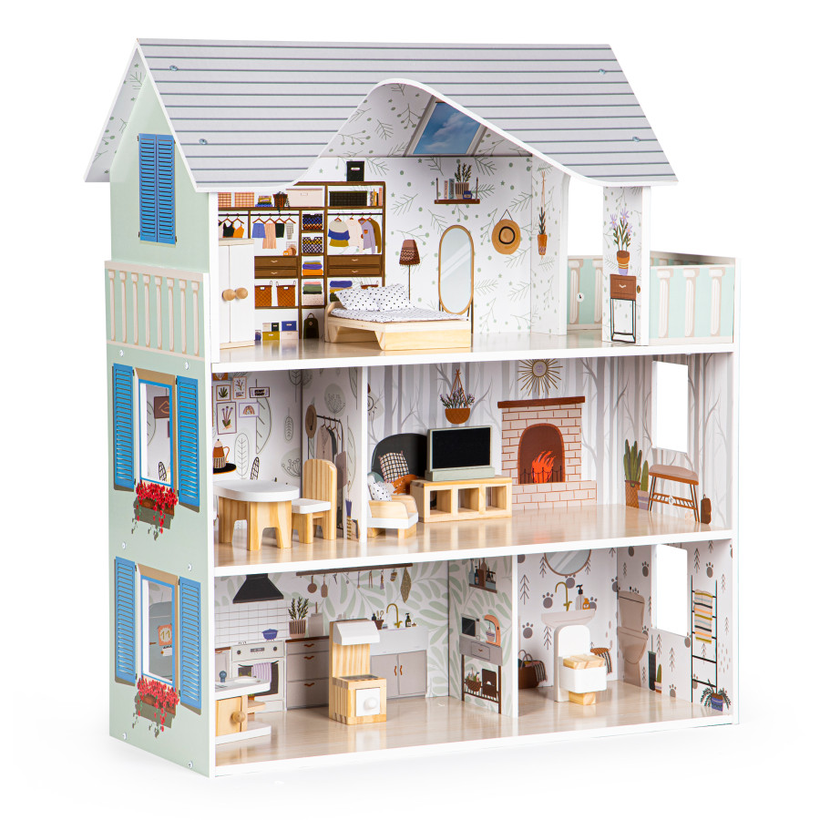 Кукольный домик с деревянной мебелью — 3 уровня «Резиденция Эммы» ЭКОТОЙС