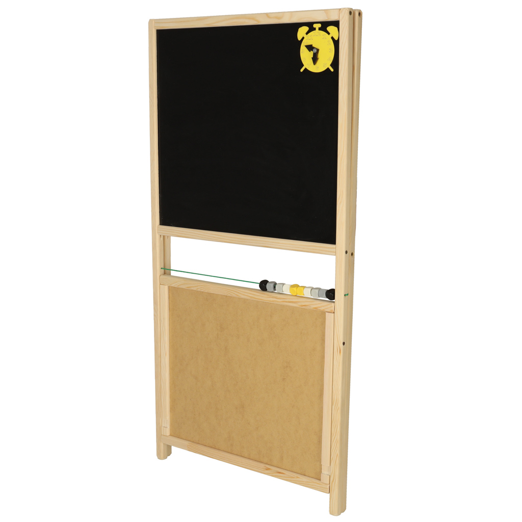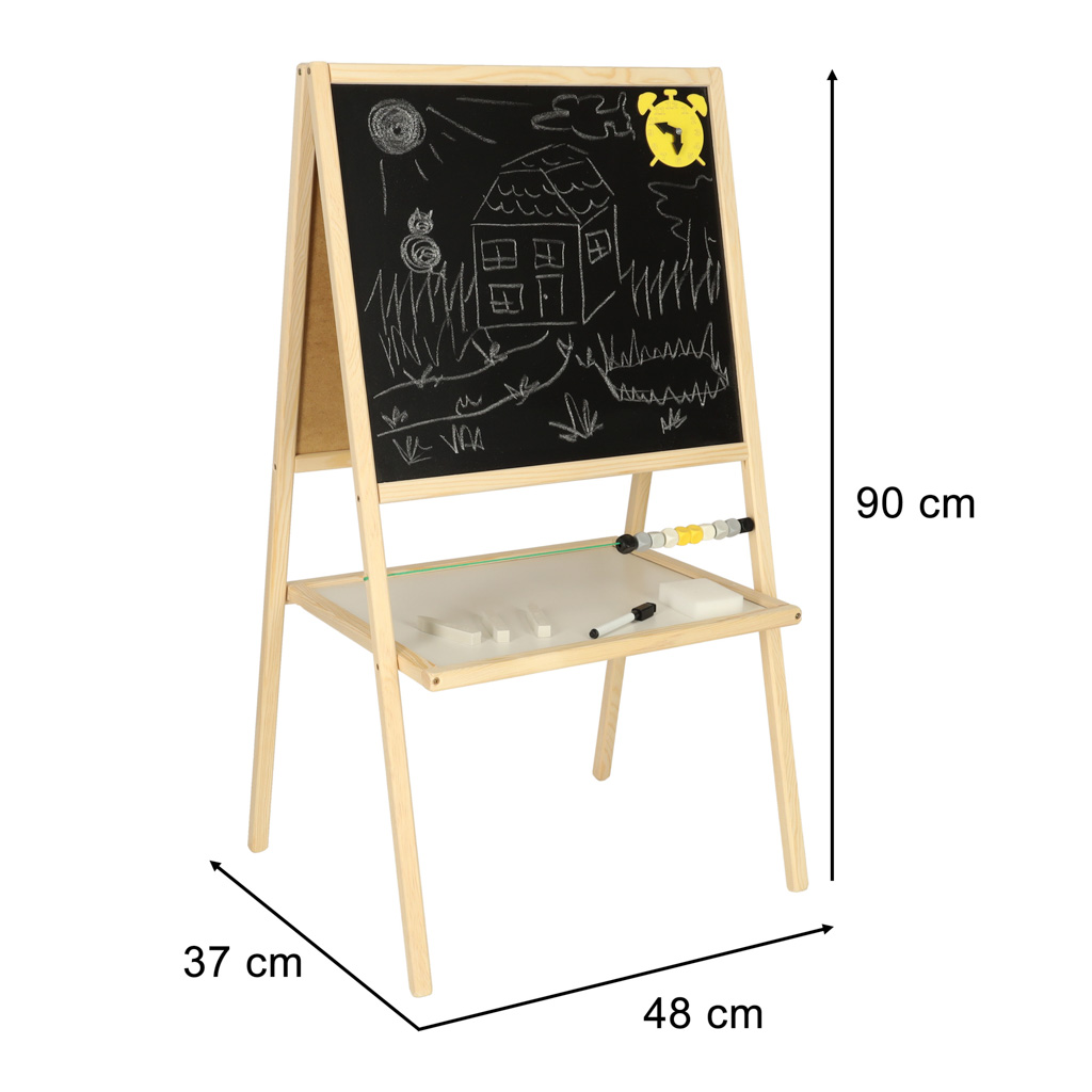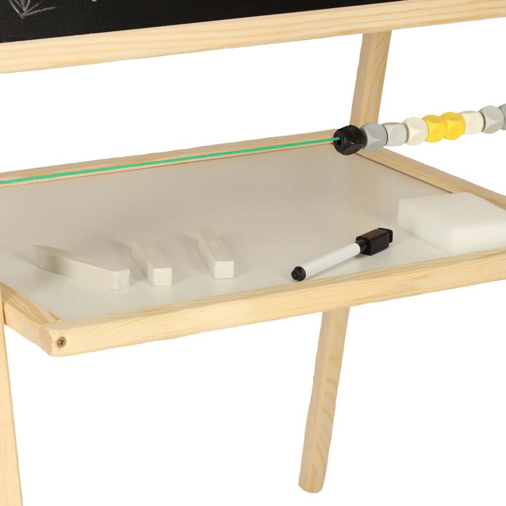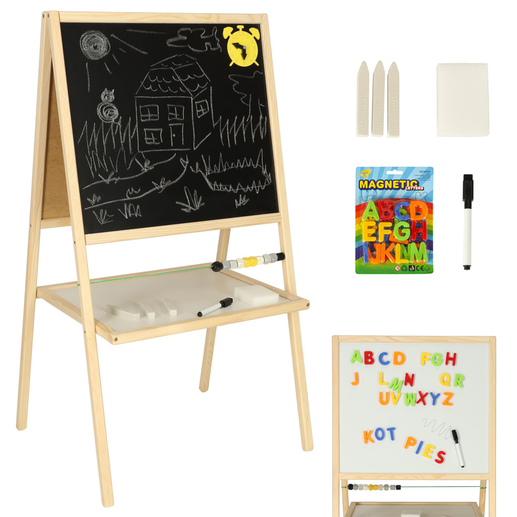 это инструмент для поддержки развития детей в обучении письму, счету и творческому мышлению. Ее двухсторонняя конструкция сочетает в себе функции меловой доски для рисования и письма мелом и магнитной поверхности, позволяющей размещать магниты и писать маркером сухого стирания.