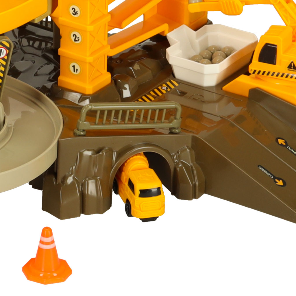 В набор входят не только машинки, но и другие элементы конструкции, в том числе подъемный кран. Это позволяет ребенку полностью взять на себя роль руководителя строительства, планируя транспортировку грузов и контролируя ход работ.