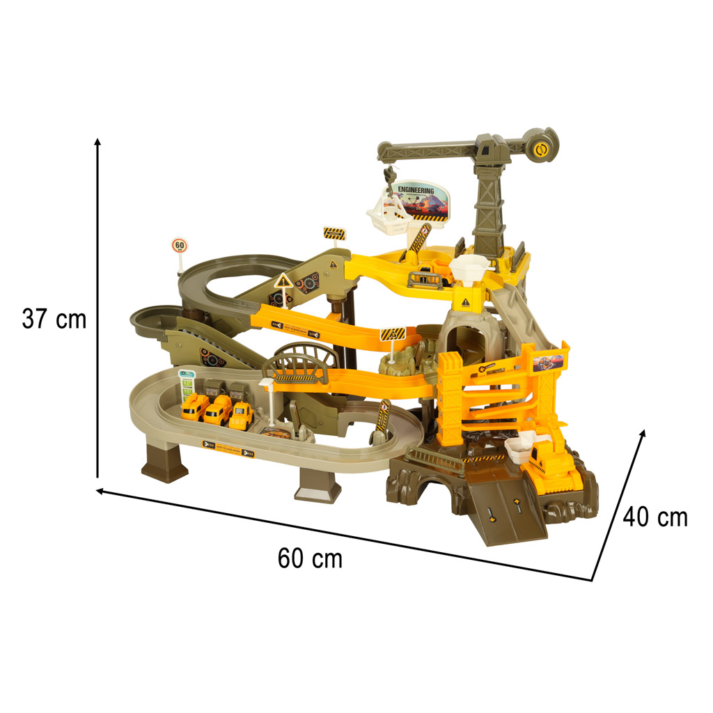 Многоуровневый автотрек — это уникальная игрушка, которая перенесет вашего ребенка в увлекательный мир строительства и транспорта, полный динамичных действий и извилистых дорог!